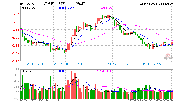 红利国企ETF(510720)业绩比较基准为上证国有企业红利指数收益率,管理人为国泰基金管理有限公司,基金经理为麻绎文,成立(2024-04-30)以来回报为3.07%,近一个月回报为-2.13%。