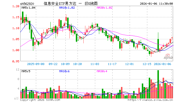 1月6日,截止午间收盘,信息安全ETF易方达(562920)涨0.67%,报1.056元,成交额529.48万元。信息安全ETF易方达(562920)重仓股方面,中科曙光截止午盘涨1.88%,浪潮信息涨0.25%,紫光股份涨0.40%,海康威视涨1.00%,大华股份涨0.42%,三六零跌1.49%,思特威涨0.66%,中国长城涨1.44%。