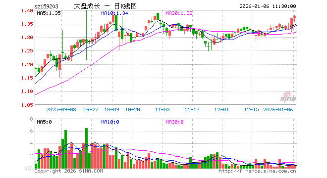 1月6日,截止午间收盘,大盘成长ETF(159203)涨0.58%,报1.376元,成交额67.65万元。大盘成长ETF(159203)重仓股方面,宁德时代截止午盘跌1.84%,贵州茅台涨0.05%,紫金矿业涨5.65%,中际旭创跌3.53%,新易盛跌2.91%,立讯精密涨0.27%,比亚迪涨0.65%,中芯国际涨1.96%,药明康德涨1.72%,阳光电源涨0.42%。