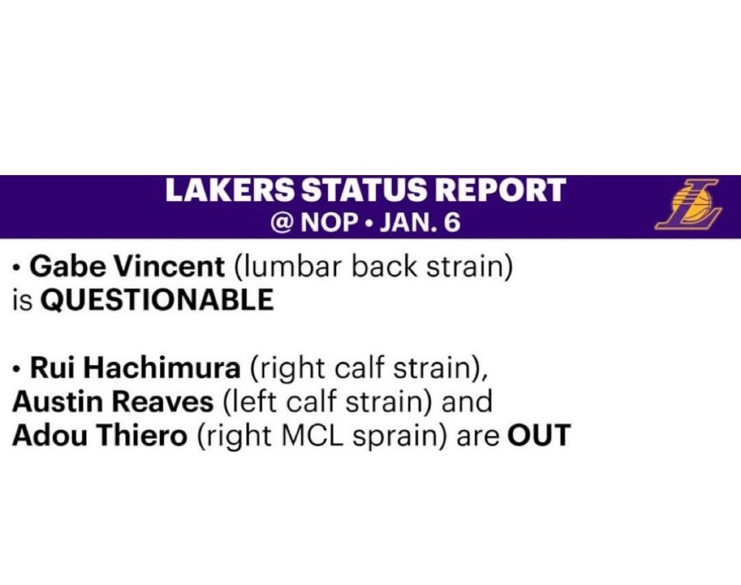 湖人出发前往鹈鹕 马刺的客场之旅,文森特出战成疑了,八村、里夫斯、阿杜继续缺阵!