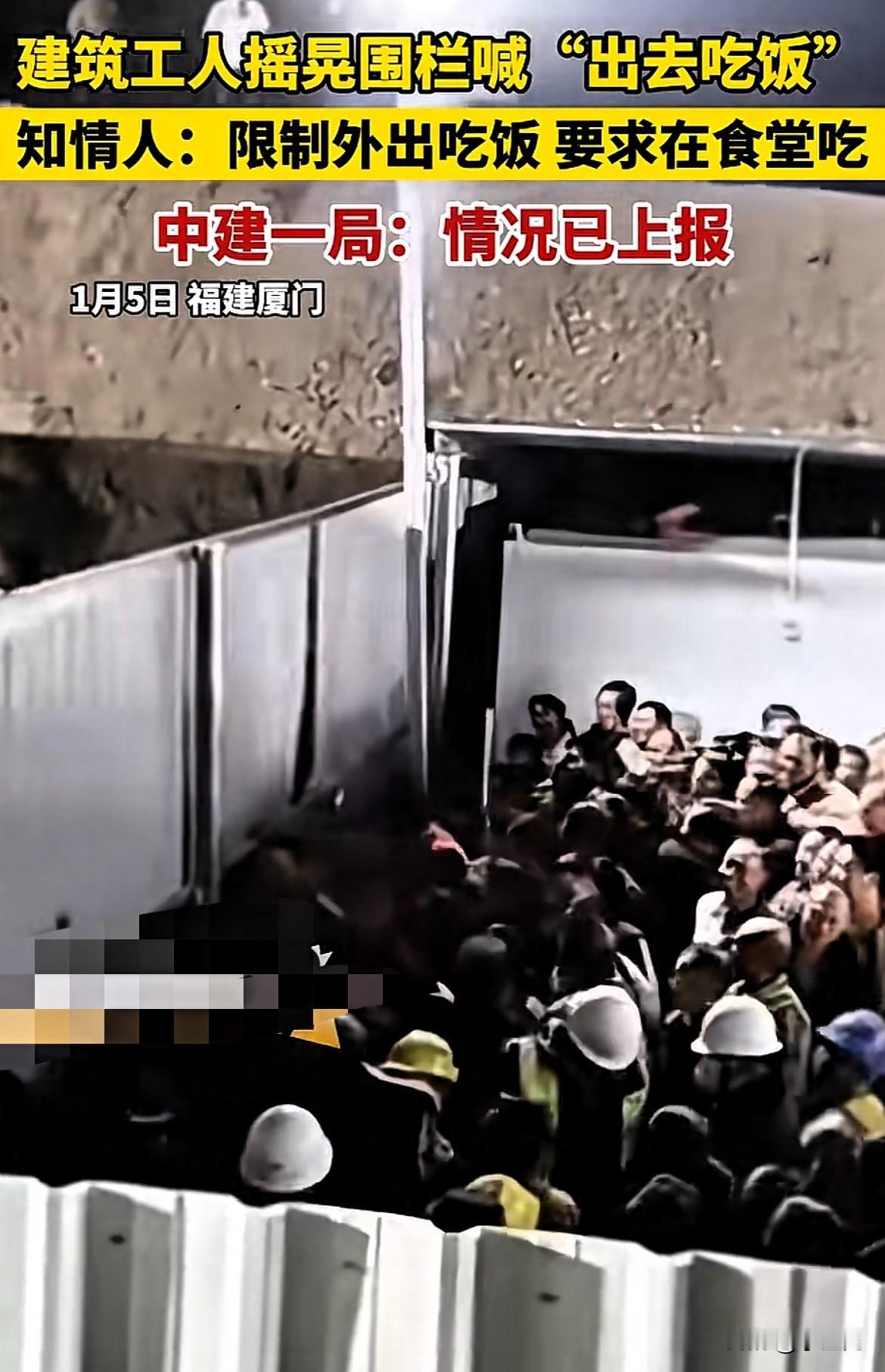 这也太气人了!福建厦门,一处工地上,几名建筑工人站在围栏内,用力摇晃护栏,大声喊着:“出去吃饭!”视频一出,很多人第一反应是愤怒:这年头,连吃饭的自由都要被管? 很快,有知情人出来解释:并不是不让吃饭,而是要求工人统一在工地食堂就餐,限制外出。 中建一局随后回应:相关情况已上报,正在核实处理。 事情到这一步,其实已经不是“吃哪儿”的问题了。 站在管理角度说,统一就餐可能是出于安全、疫情或管理考虑;但站在工人角度,干了一上午重体力活,连走出去吃顿热乎饭的选择都没有,心里怎么可能没情绪? 那一声“出去吃饭”,喊的不是饭,是被忽视的感受。 在我看来,真正好的管理,从来不是“一刀切”,而是把人当人。规定可以有,但解释要到位、沟通要提前、选择要留余地。 工地需要秩序,工人同样需要尊重。如果连最基本的吃饭感受都顾不上,再合理的制度,也只会变成围栏里的压抑。 这件事,你怎么看? (信息来源:法治进行时)
