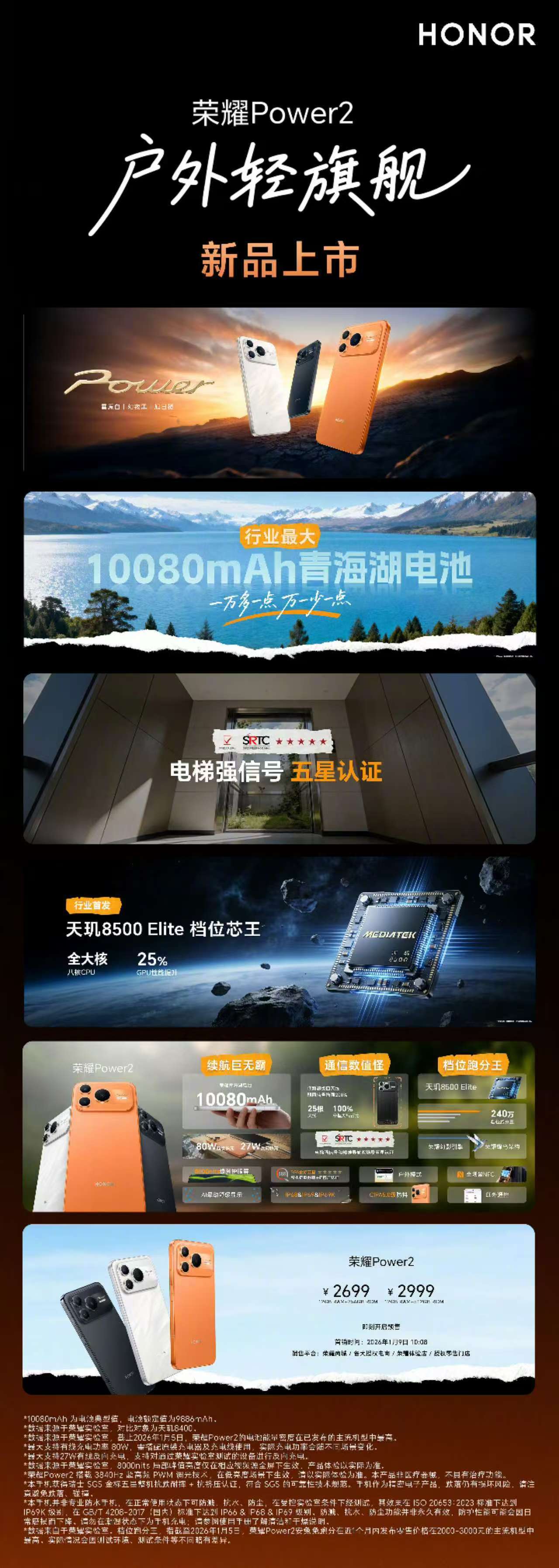 荣耀Power2 作为行业相关从业者,我深知航空级双光束激光焊接工艺的研发投入远超常规——这种原本用于航天器的精密技术下放到手机,带来了显著的工艺升级成本。再看10080mAh青海湖电池,成本大幅提升但换来了解决户外工作者用电焦虑的刚需。对比某品牌天玑8450机型的3千加定价,Power2搭载天玑8500芯片和鸿燕六翼天线,国补后售价也才2294,价格涨幅更显克制,实则是把利润空间让给了用户体验。