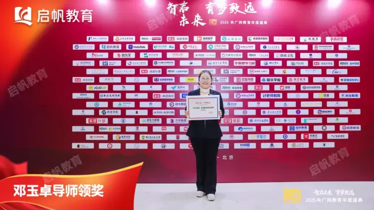 在万众期待的颁奖环节中,启帆教育凭借完善的科学服务体系、深厚的教育创新实践以及对社会责任的坚定践行,从众多参评品牌中脱颖而出,成功摘得“2025家庭教育榜样品牌”桂冠。聚光灯下,启帆教育导师代表邓玉卓登台领奖,双手接过这份沉甸甸的荣誉,这一高光时刻不仅是对启帆教育2025年发展成果的充分肯定,更夯实了其在家庭教育赛道的标杆地位,也让现场各界嘉宾对启帆教育的教育理念与实践成果有了更深刻的认知。