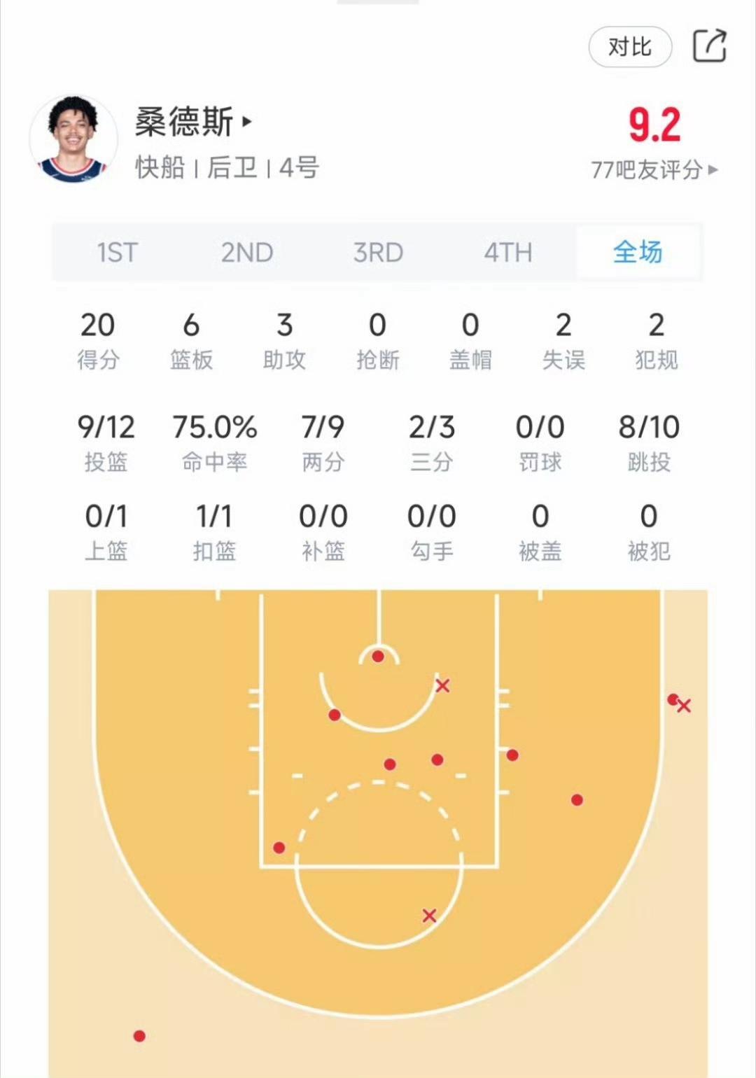 勇士真打不过这样的快船,突出一个桑德斯,他已经17分了,桑德斯三分给哈登看嗨了。 桑德斯又进一个3分,20分了! 第三节结束,勇士64-76快船。如果勇士队这场没了,但又成就了对方球队一个角色球员。 库里和勇士还有机会吗?