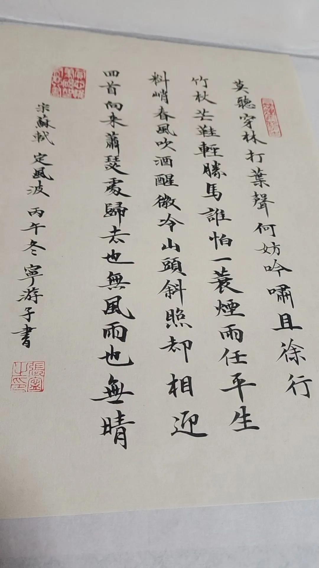 ‘’定风波‘’,应该是文化人最爱的诗篇了,选了渐变和天青两款A4纸,感觉渐变色与檀木框更搭一些[偷笑] (文化滋润游子心)