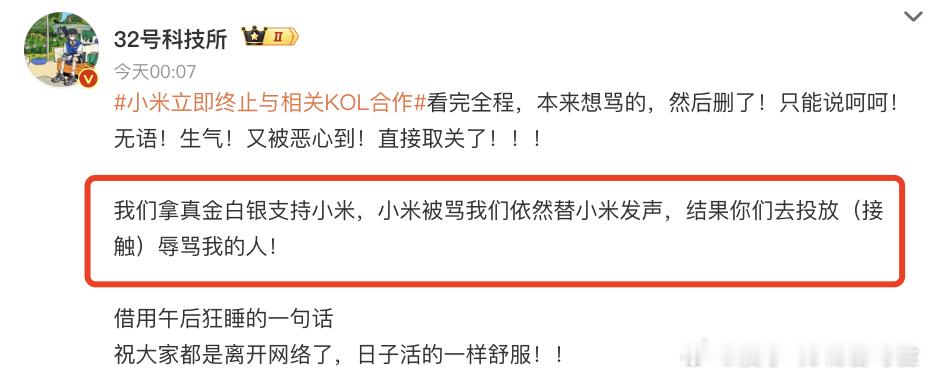 米粉不乐意了,骂小米的该不该投放?其实小米应该对米粉更好,把投放KOL的费用投给米粉取之于米粉,用之于米粉你觉得呢?大v聊车小米徐洁云回应团队接触相关kol小米 北京