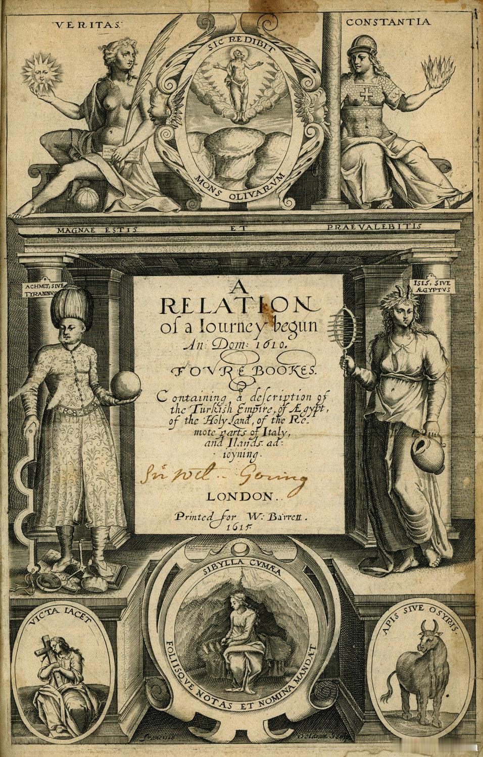 历史人物 历史知识 英国旅行家、翻译家、诗人乔治·桑迪斯(George Sandys,1578-1644)1615年出版的《始于1610年的旅行记述》中关于吉萨狮身人面像的插图。他在1610年启程游历了欧洲和近东、中东,回国后整理出版了一套四卷本的游记,是相当重要的历史和地理资料。第一卷讲述君士坦丁堡和希腊地区,第二卷关于埃及,第三卷是巴勒斯坦,尤其圣地,第四卷是意大利和东地中海各岛屿(如塞浦路斯、克里特岛等)。这幅1615年的狮身人面像中,斯芬克斯的胡子已经消失,鼻子也已经残破,所以某些史料中言之凿凿的狮身人面像鼻子被拿破仑下令开炮击毁……