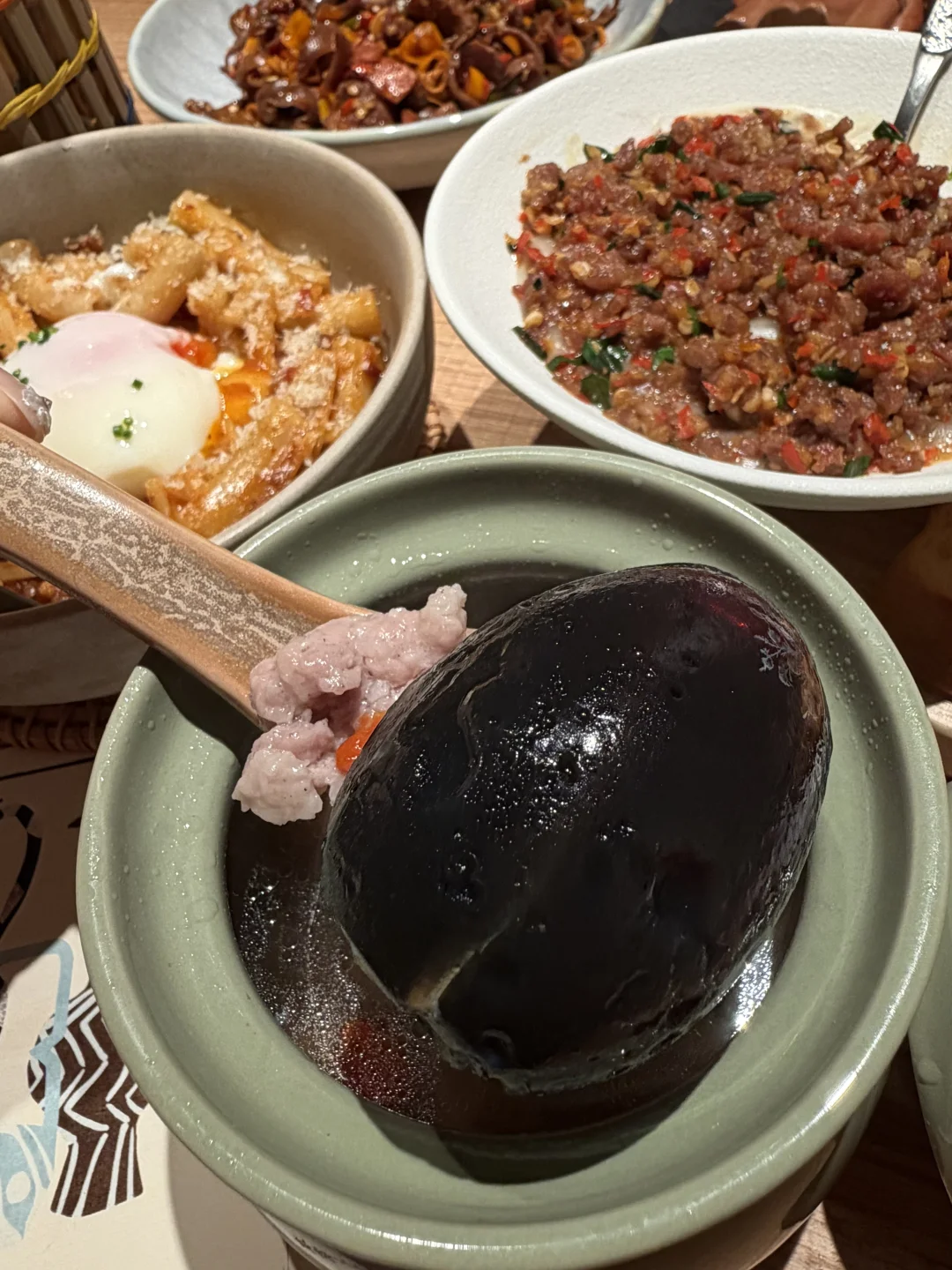 几十的江西菜吼吼吃😭…… - ✔️牵手闺蜜慕斯蛋糕 好闺闺一起走~还是洛阳博物馆的文物同款!尊嘟不忍心吃🥹 ✔️江西空心粉配温泉蛋 香香辣辣空心粉裹满蛋液~这谁吃了不迷糊🥵 ✔️江西碎椒牛肉配吐司 松松脆脆吐司🥖配上牛肉碎和奶呼呼土豆泥~口感层次贼丰富!! ✔️人面陶瓷慕斯蛋糕 不用去景德镇!也能吃到同款人面陶瓷慕斯🍰太抽象了哈哈哈哈可爱晕!里面是酸甜慕斯夹心~ ✔️景德镇芝麻牛奶冰 吃完感觉尊嘟会长头发🫧冰冰凉凉嘎嘎解辣!! 📍胡恰·景德江西菜(西宁海湖万达店)