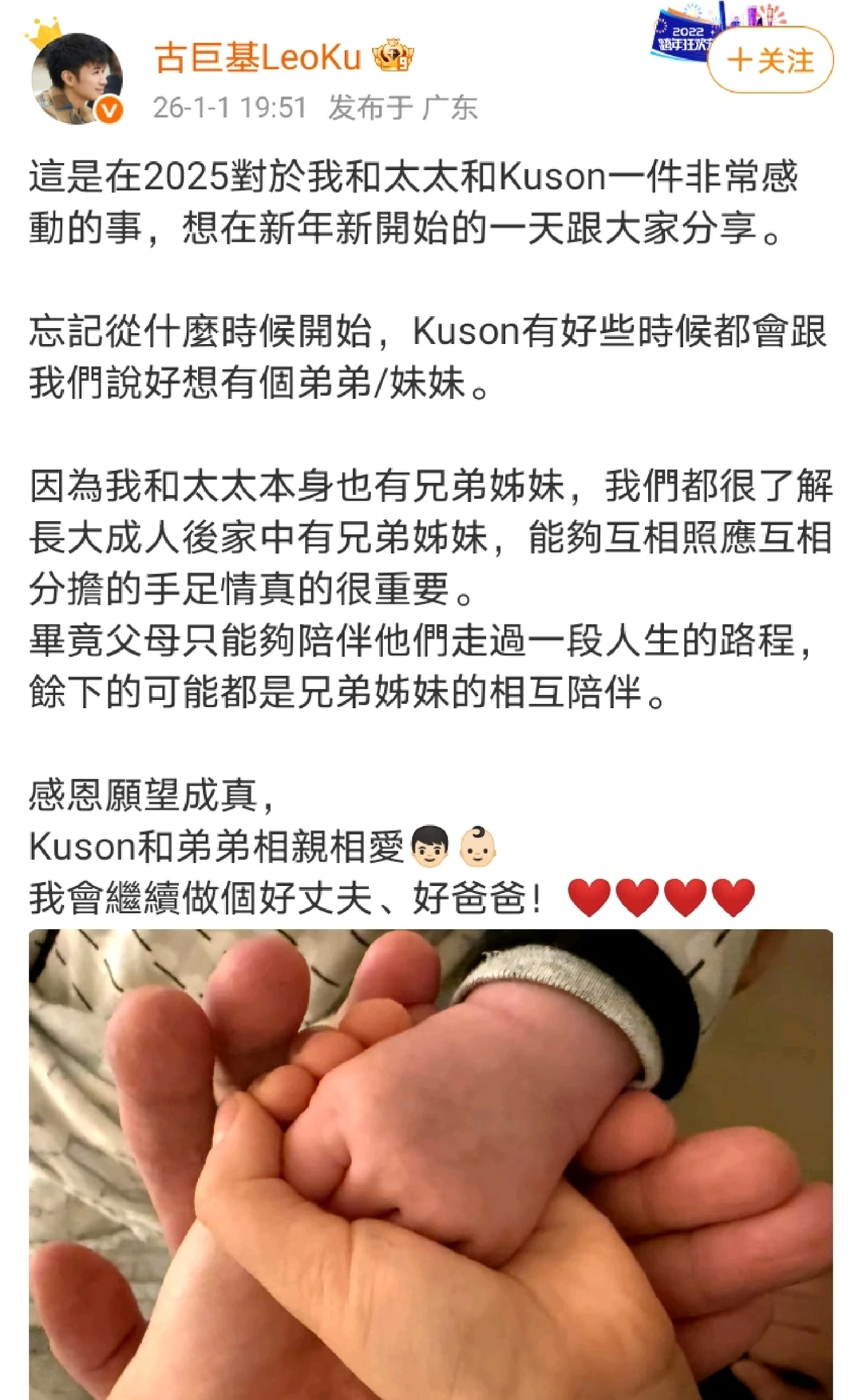 2026年蕞让我意外又惊讶的好消息就是古巨基的二胎了,要知道他跟妻子都50多岁了,尤其陈韵晴都57岁了,竟然又要了二胎,简直是个奇迹啊[色色R]