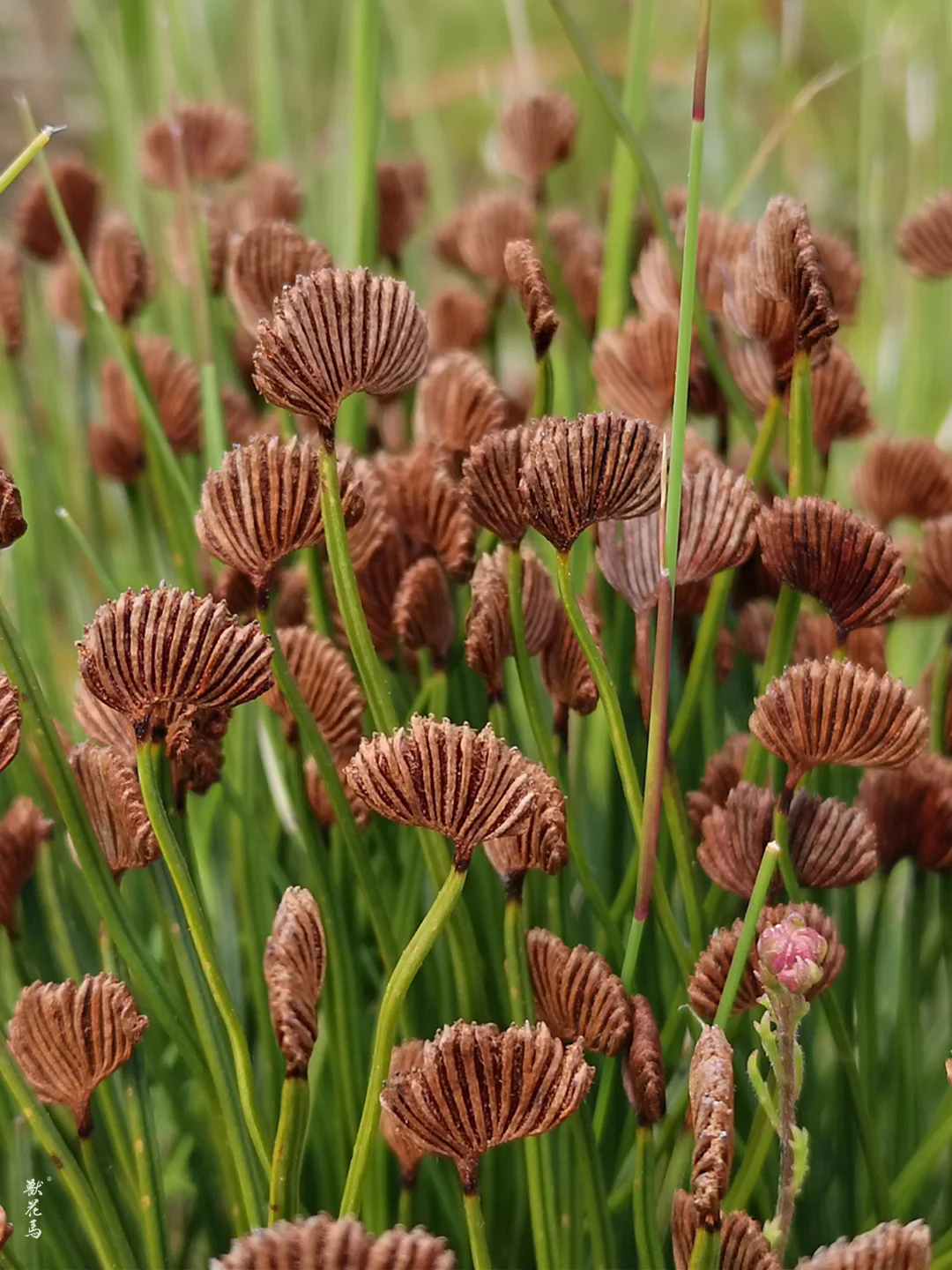 🌿🌿【远古蕨类的优雅篦梳】🌿🌿 ▫️ 𝙉𝘼𝙈𝙀​ 篦齿枝莎蕨​ Schizaea pectinata(莎草蕨科枝莎蕨属) ▫️ 𝙁𝙀𝙍𝙉 𝙁𝙀𝘼𝙏𝙐𝙍𝙀𝙎​ ✨ 叶形独特:叶片上部多次二叉分枝,呈篦齿状或扇状,形如精致的梳子 ✨ 孢子特化:能育小裂片簇生顶端,孢子囊沿中脉排成2行,孢子半圆形且赤道面有显著裂缝(分类关键特征) ✨ 微型体态:植株高10-30厘米,叶片革质,干后常皱缩,呈棕褐色 ▫️ 𝙃𝘼𝘽𝙄𝙏𝘼𝙏​ 🌱 分布局限:主要分布于南半球热带亚热带地区;中国仅见于海南、台湾、云南等地的狭窄区域 🌱 生境苛刻:严格生长在干燥贫瘠的沙质酸性土壤(pH 4.5-5.5),常见于疏林下或低山丘陵的裸露沙地 🌱 气候适应:耐旱性强,适宜热带季风气候,年降水量需高于800毫米但忌积水 ▫️ 𝙍𝘼𝙍𝙄𝙏𝙔 𝘼𝙉𝘿 𝙋𝙍𝙊𝙏𝙀𝘾𝙏𝙄𝙊𝙉​ ⚠️ 濒危现状:因生境脆弱且分布狭窄,属于稀有蕨类,可能符合极小种群标准(类似莎草蕨属其他物种的生存现状)