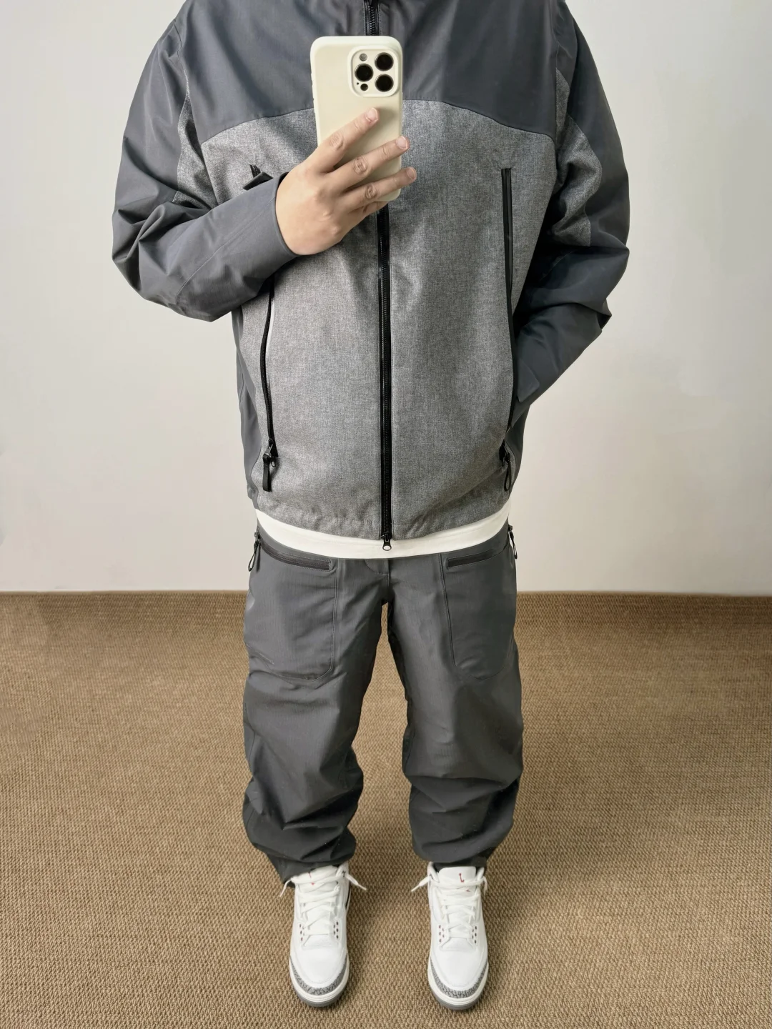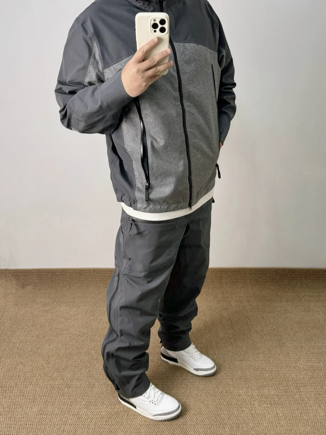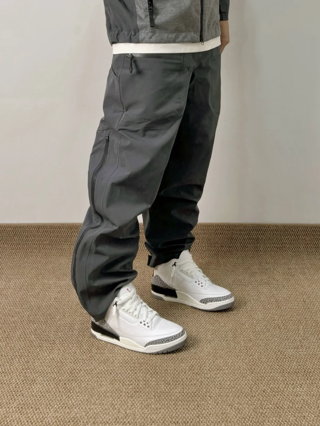 -除了运动风,适合AJ穿搭的还有户外风;对于防风服&冲锋裤,乔三&乔四就是最契合的两代 . —————— . 🧥Expensive Taste // L . 👖Expensive Taste // L . 👟Air Jordan 3 / white cement // 42.5 . —————— . ✏️本人178cm75kg 球鞋尺码265mm(正常EU42) . 💭以上均为我个人观点,不喜勿喷,欢迎讨论