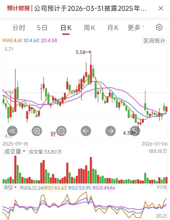 股市收市了。 新年的头两个交易,大盘疯长,确实给股民带来了信心。对于股市来说,2026年应该是一个不错的年份。 只是可惜,本人重仓持有的股票,一直远远落后于大盘,两天的涨幅还不到大盘一天的涨幅大。。 持股最怕就是这样的股票,大盘大涨时,它宛如蜗牛,走两步,退一步半。大盘回调时,它拉稀窜稀,溜得比兔子还快。