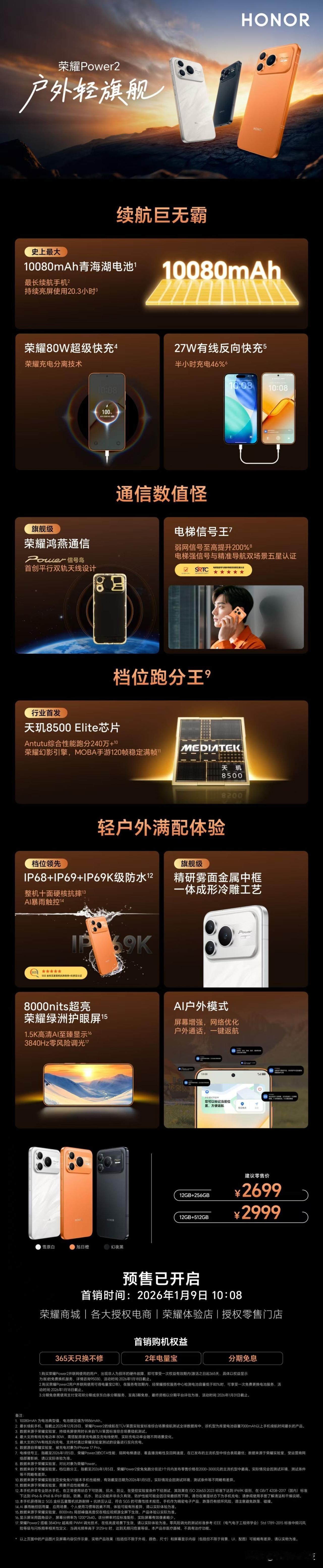 荣耀这是要在中端机上线上线下通吃? 这前脚才推出了1万毫安时的WIN系列,特别是WIN RT还是挺有性价比,妥妥的线上甄选机型。 这才没几天主打线下市场的Power2也来了,同样是超1万毫安的超大电池,外观改的更加的高端果味化,还有户外专享模式,信号更好、续航也更加的耐用。 就个人而言那肯定是闭眼选WIN RT,毕竟同价位的情况下配置高太多了~ 但就线下销量而言,Power2大概率还真比WIN RT要卖的更好,毕竟还是有很多人不是那么关注具体配置,只要实际体验还算不错,外观顺眼就会入手。 荣耀的这套线上线下小连招还挺不错的。
