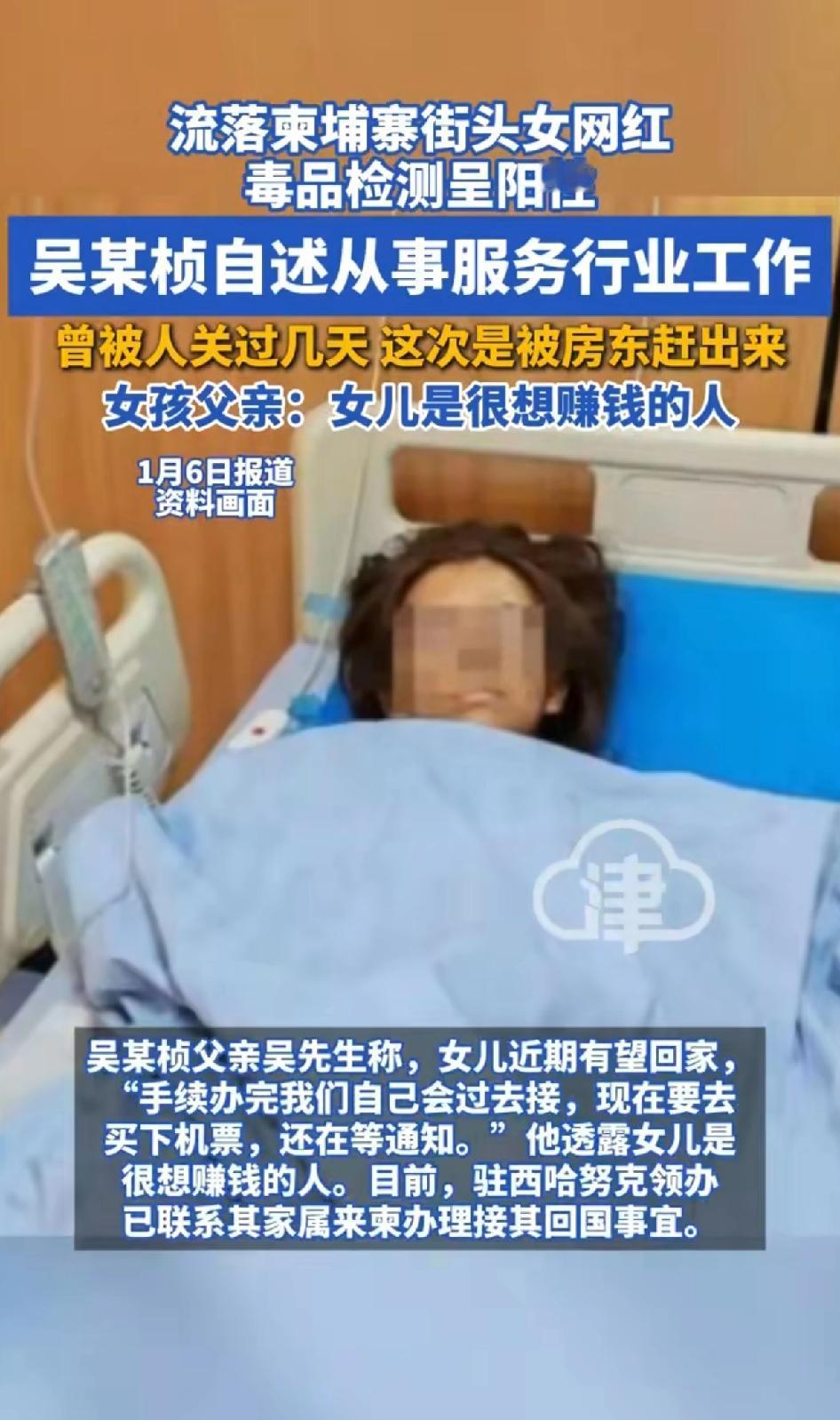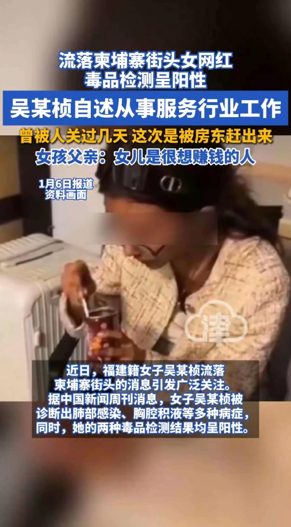 流落柬埔寨街头的女网红,毒品检测呈阳性,福建女网红吴某桢流落柬埔寨街头的事儿闹得挺火。 她有2.4万粉丝,去年12月26日就开始流浪,膝盖受伤、面目憔悴。她爸说当时她要钱看病,家里转了2200元后就失联了。 后来驻柬使馆找到她送医,这一检查问题可不少,肺部感染、胸腔积液等病症缠身,毒品检测还是阳性。她自称2025年3月朋友介绍去柬埔寨做服务工作,还谈了恋爱又分手,因身体不好被房东赶出来。 这女孩子经不住诱惑,被人带出国染上毒品。长脑子的也该想到,柬埔寨那鬼地方紧挨泰国缅甸,当地还有战争,乱的不可开交,还去那种地方! 即使没有战争,去那从事正经工作,难道会比国内挣得更多? 想去那里挣高薪,你要到美国、英国、日本、欧洲这些地方找“高薪”工作还可靠一点。 本来就穷的叮当响的地方会有正经的高薪工作等着你,真是痴人说梦话。在国内当网红都不行,还跑去国外挣高薪,想想也是可笑。 现在驻西哈努克领办联系家属接她回国,只能说,别被“高薪工作”忽悠,不然就可能落得这般下场。