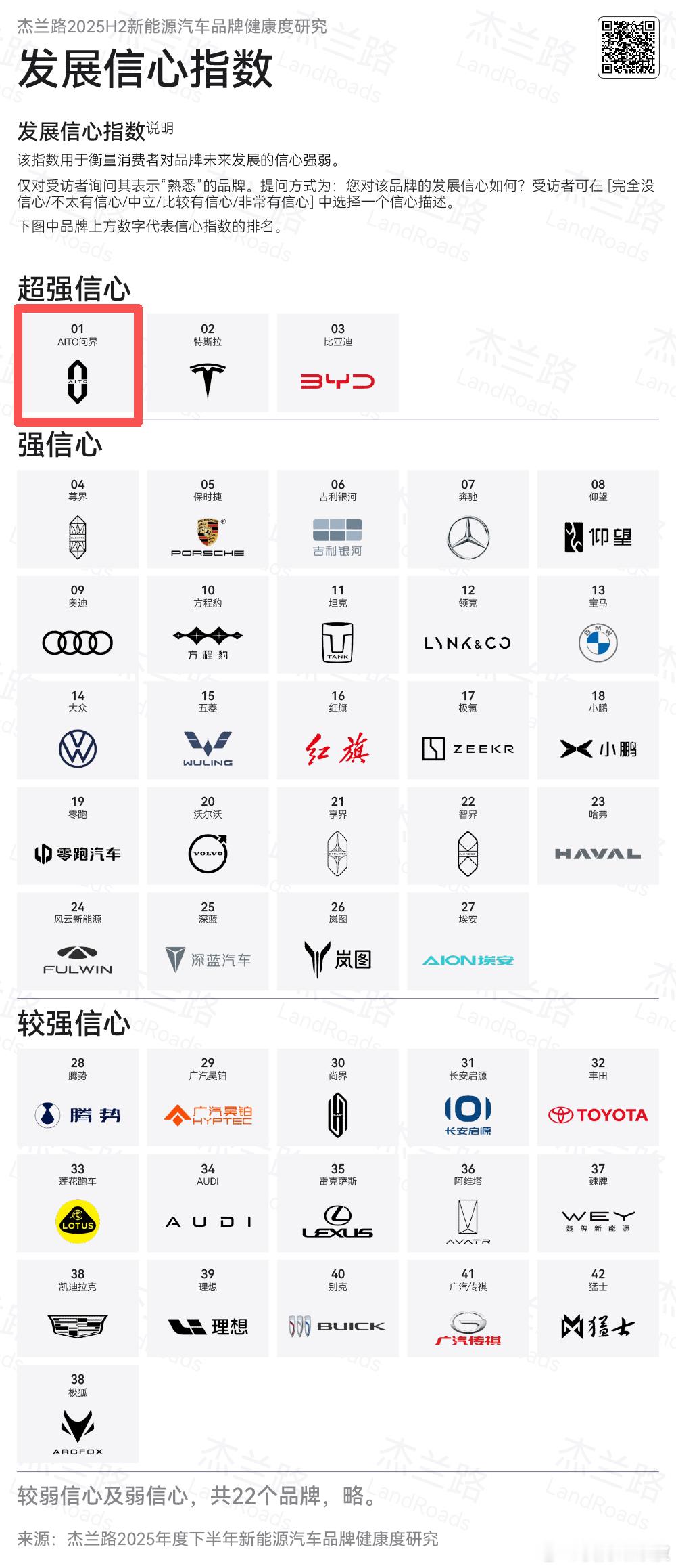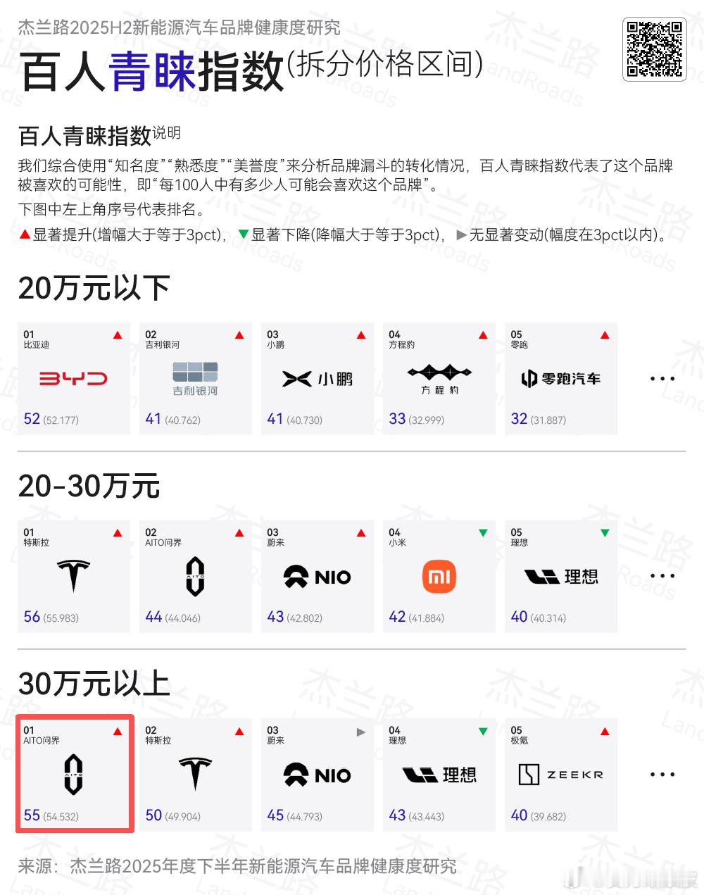 杰兰路今日发布《2025年度下半年新能源汽车品牌健康度研究 (公共指标篇)》,问