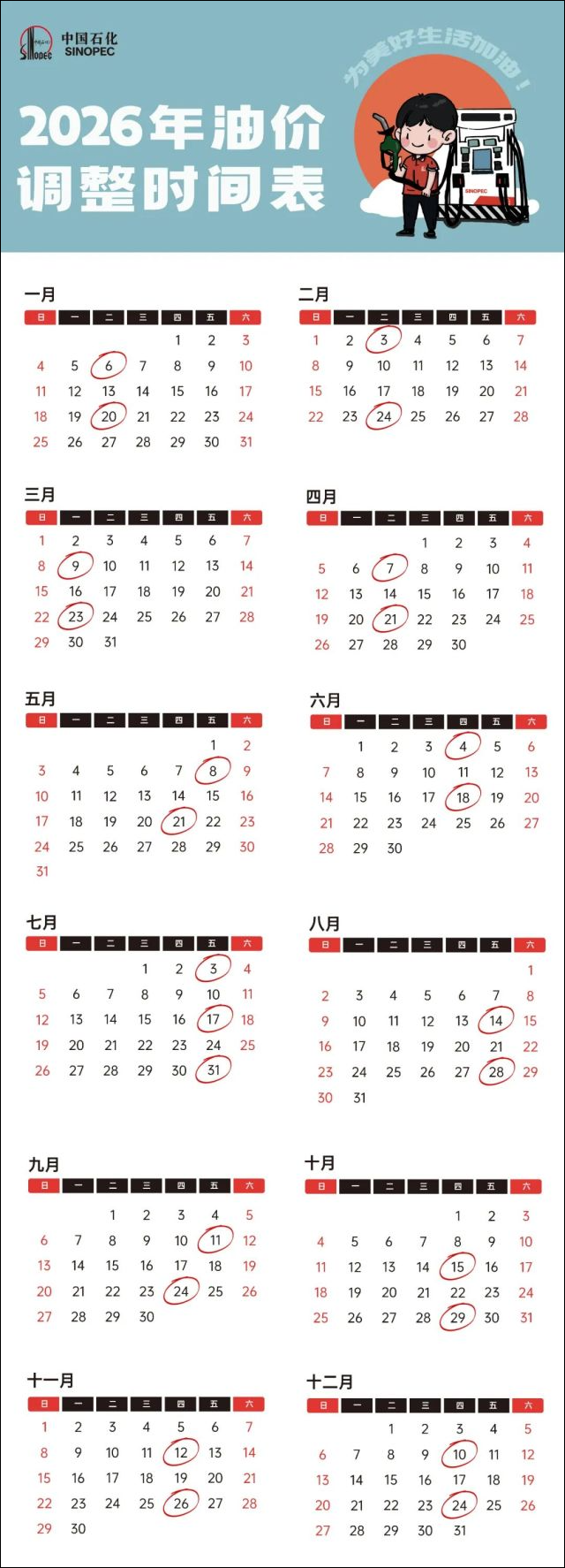 半年度油价调整日历