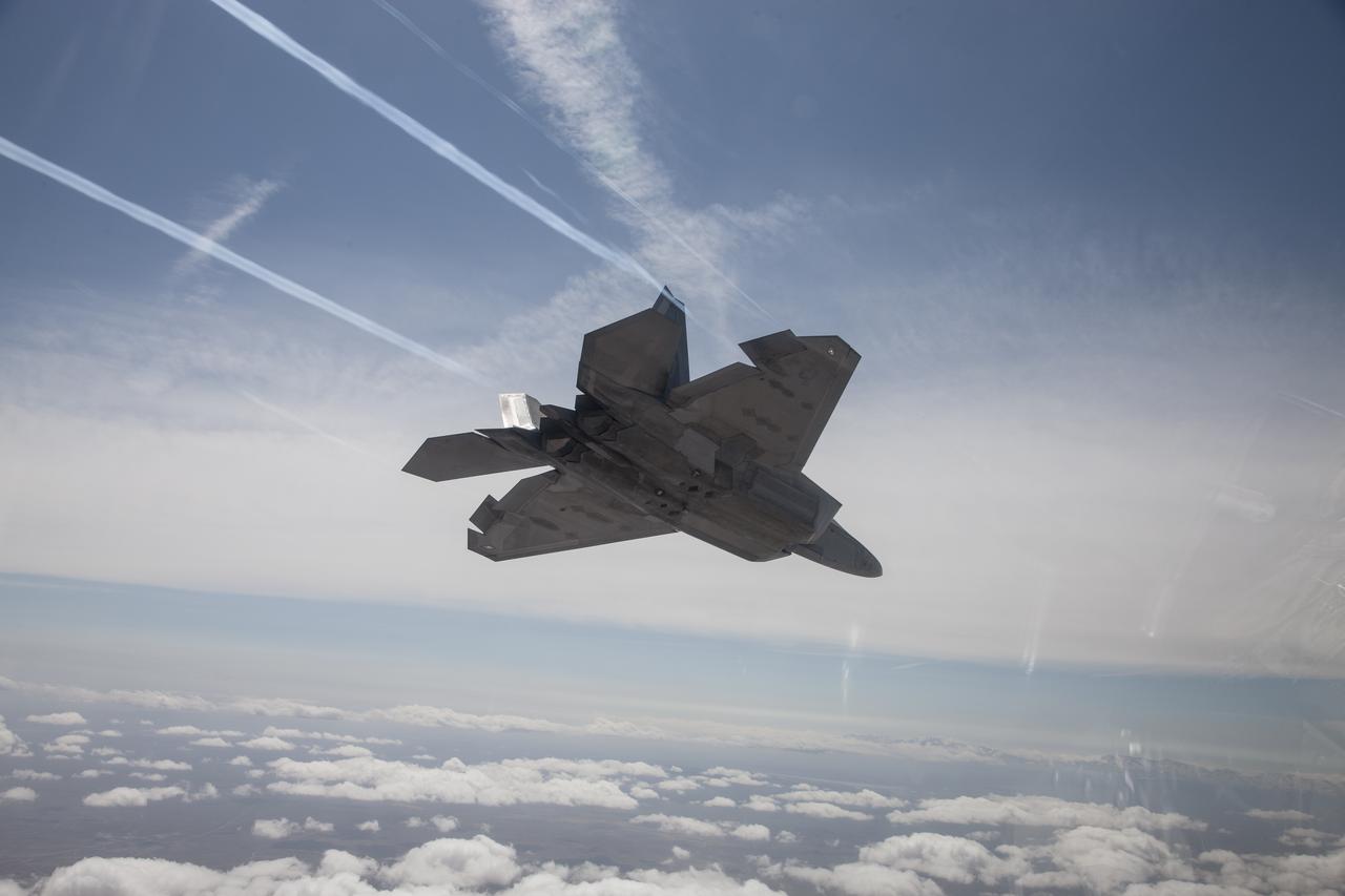 这两张图片可以看到美国空军的F-22隐形战斗机在空中飞行时,是怎么减速的。除了这