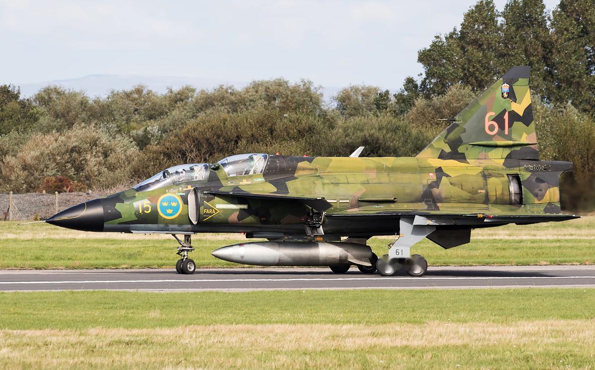 航空新视野瑞典J-37雷式战斗机的单座型和双座型,上世纪60年代和70年代,J-37战斗机算得上一款先进的战斗机,一款非常有瑞典特色的战斗机。瑞典萨伯公司能开发出单座型,双座型还有侦察型,并且生产的数量不少,出口到多个国家。有一说一,那个时候的瑞典人还是有实力的。