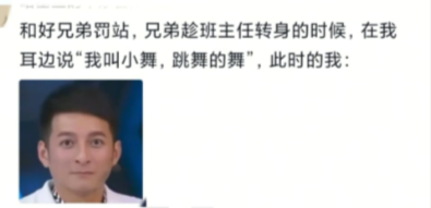 和好兄弟罚站,兄弟趁班主任转身的时候,在我耳边说"我叫小舞,跳舞的舞"