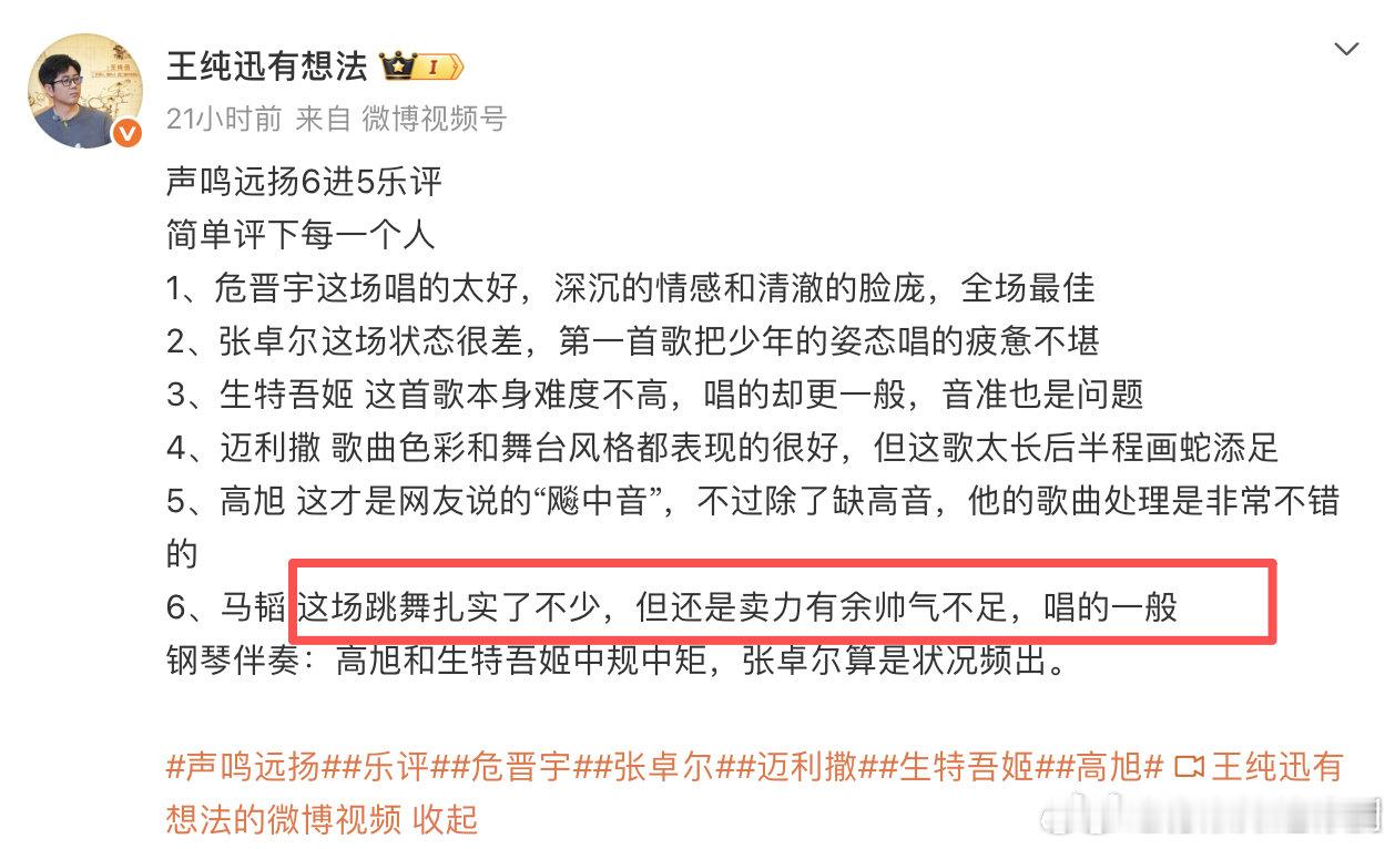 乐评人锐评音综选手卖力但不帅马韬这舞台卡路里拉满!高强度舞蹈还能稳住完成度,真的很拼!声鸣远扬