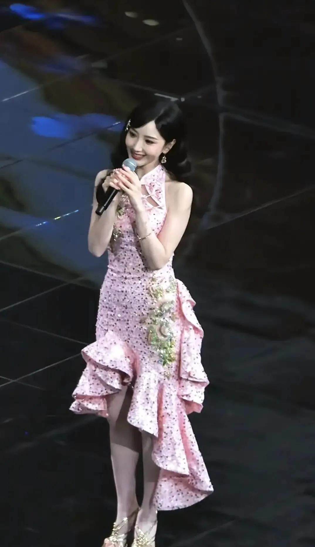 跨年晚会的舞台上,毛晓彤一袭粉色礼裙惊艳亮相。柔美的粉调衬得她肌肤胜雪,裙摆轻盈飘逸,走动间宛如坠入人间的粉色精灵。甜美的笑容搭配精致妆容,与礼裙的浪漫氛围完美融合,瞬间成为全场焦点,甜妹气质拉满!她搭配同色系缎面手套,长发挽成优雅低髻,耳畔的粉钻耳坠点缀其间,甜美的笑容与粉色礼裙相得益彰,宛如从童话中走出的公主,瞬间成为全场焦点。毛晓 彤 毛晓 彤