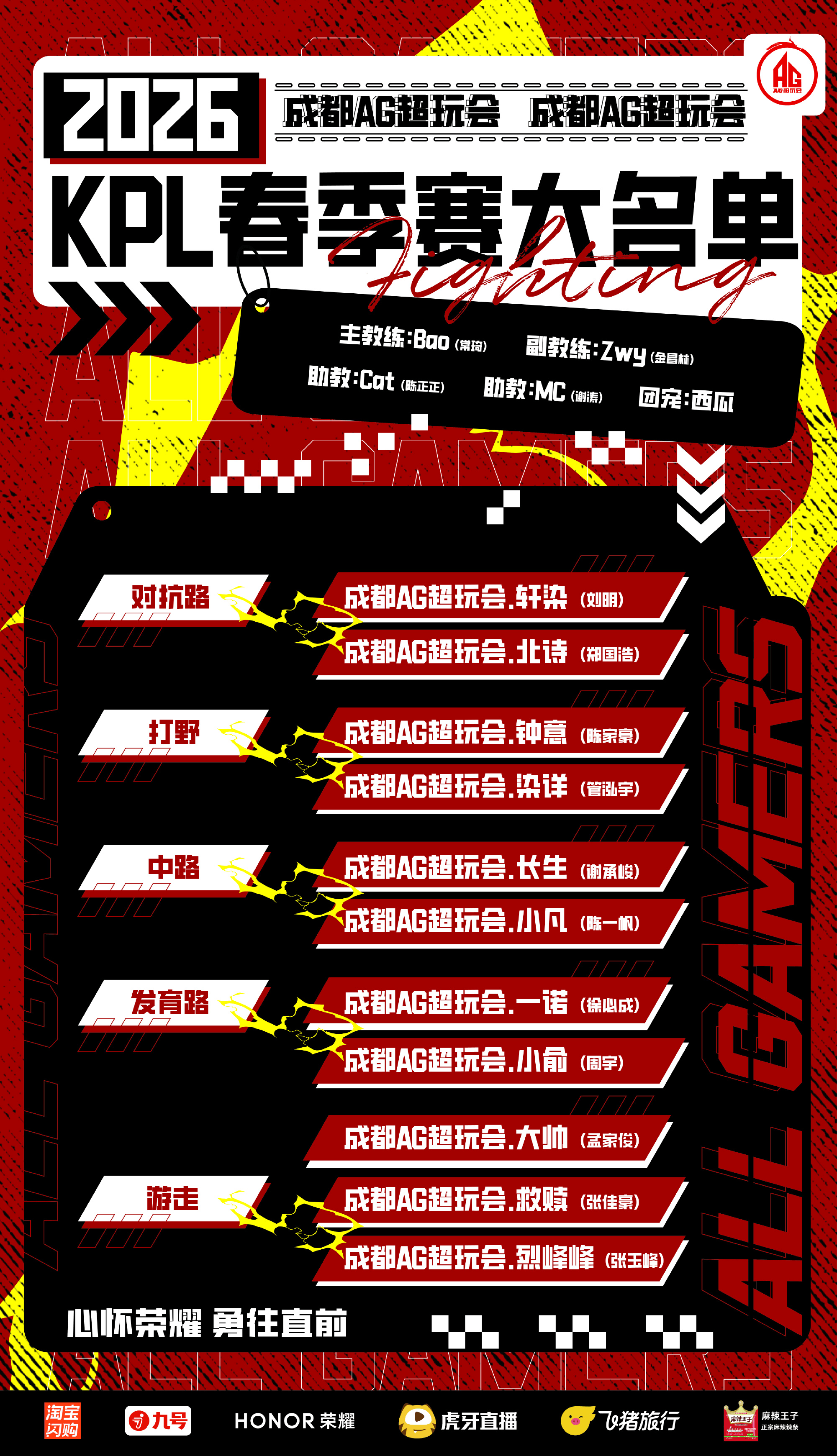 AG发布春季赛大名单:助教Cat,染详/烈峰峰加入大名单