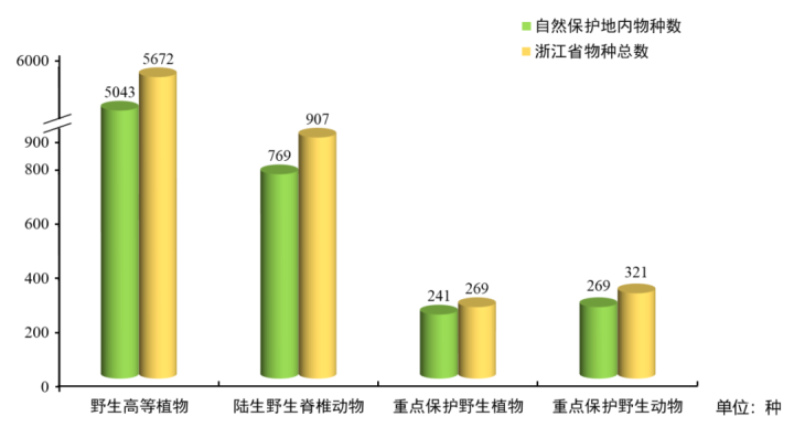 浙江省自然保护地物种多样性与全省情况比较图