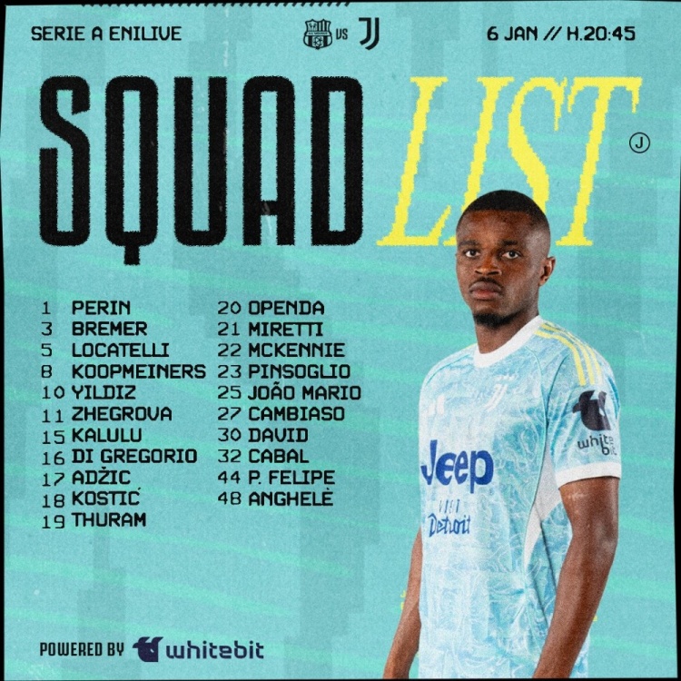 直播吧1月6日讯北京时间1月7日凌晨3:45,2025-26赛季意甲联赛第19轮,尤文图斯将客战萨索洛。赛前,尤文公布了本场比赛球队大名单,弗拉霍维奇和米利克伤缺,伊尔迪兹领衔进攻线。