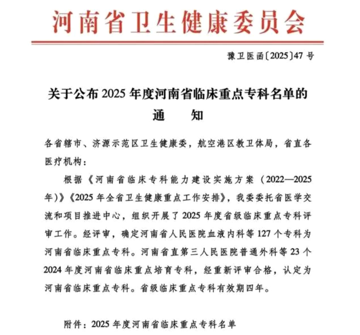 近日,河南省卫生健康委发布《关于公布2025年度河南省临床重点名单的通知》(豫卫医函〔2025〕47号),漯河医专二附院(漯河市骨科医院、漯河市立医院)运动医学科与护理专科成功通过评审被确定为河南省临床重点专科。漯河医专二附院再添两个省级临床重点专科,标志着这两大专科在医疗技术、科研创新、服务质量及区域影响力等方面达到省内领先水平。