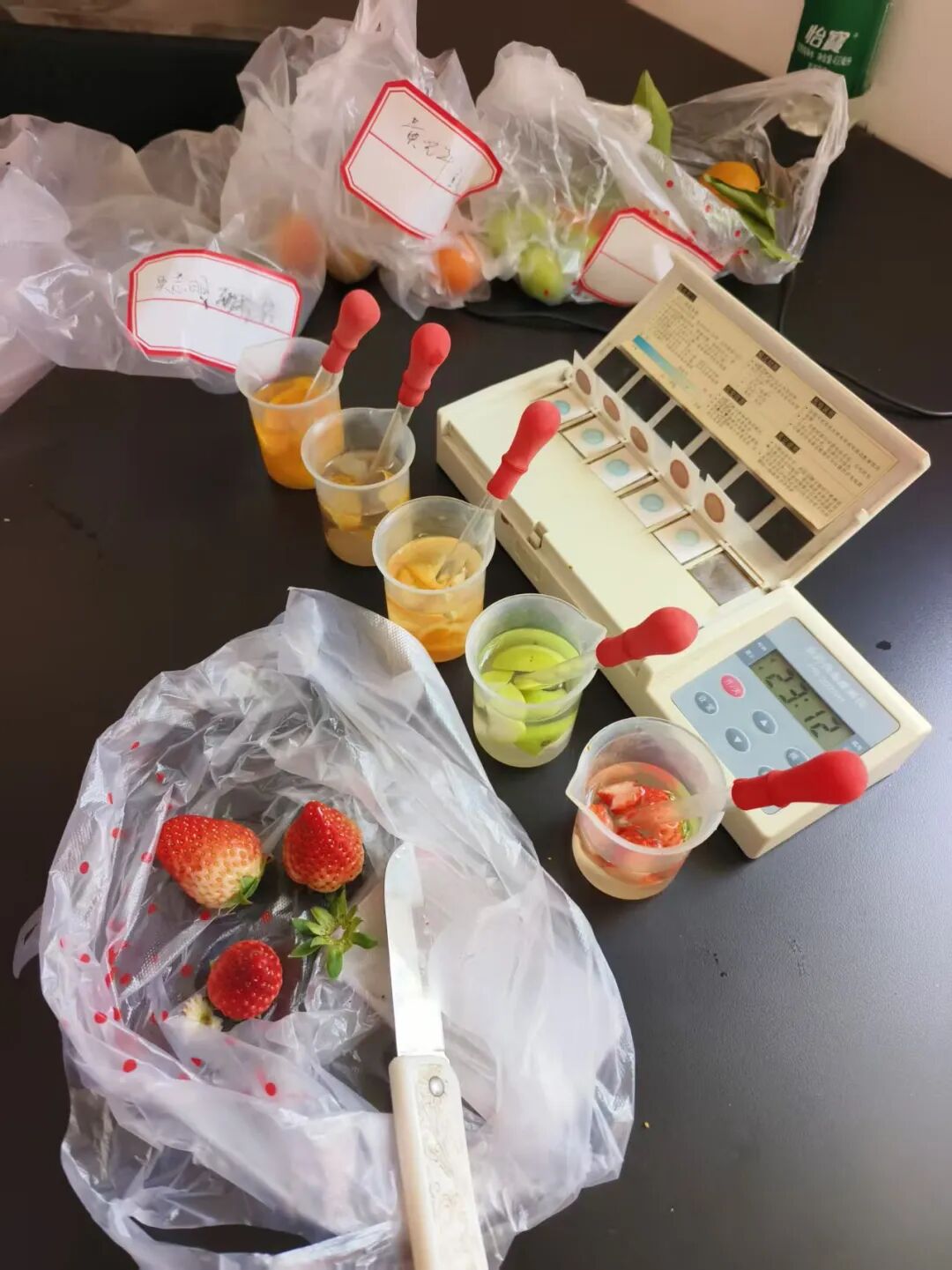 天山路水果批发市场食品快检室草莓抽检。