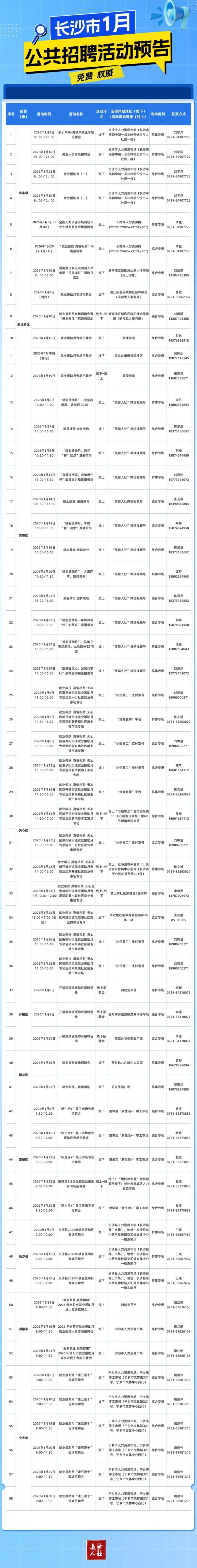 长沙晚报掌上长沙1月6日讯(全媒体记者刘攀)为进一步做好就业服务工作,助力各类求职群体实现就业,记者今日从长沙市人力资源和社会保障局获悉,本月长沙将集中开展58场公共招聘活动,覆盖市本级及湖南湘江新区、芙蓉区、天心区等,通过线上线下相结合的形式,为求职者和用人单位搭建精准对接平台。