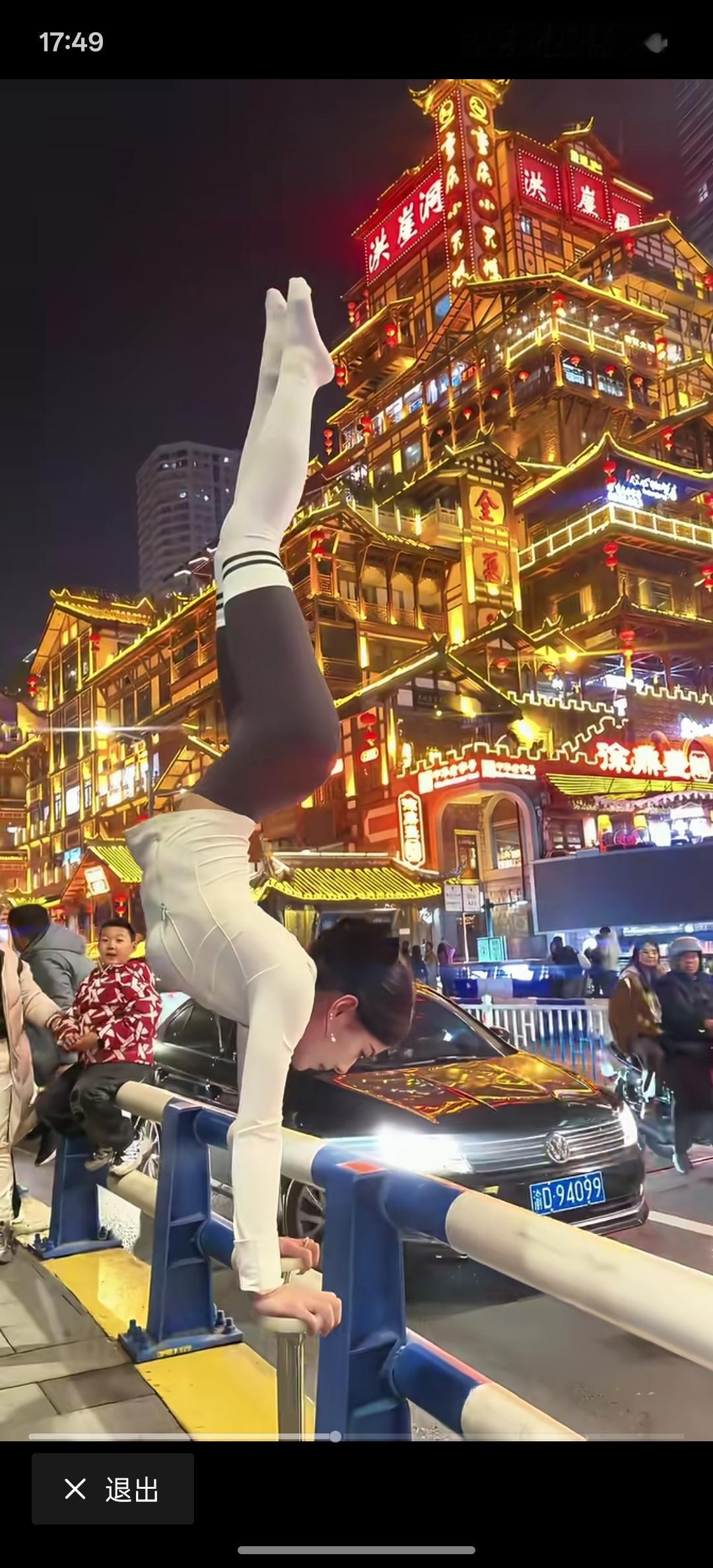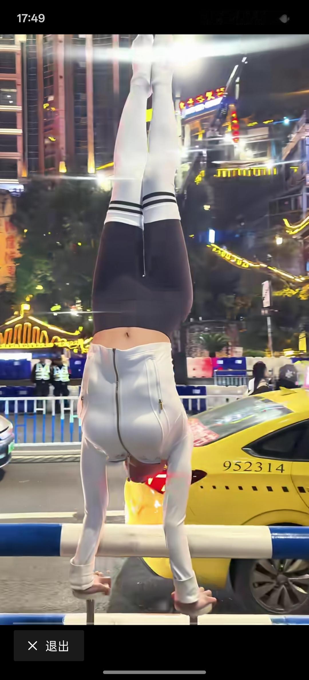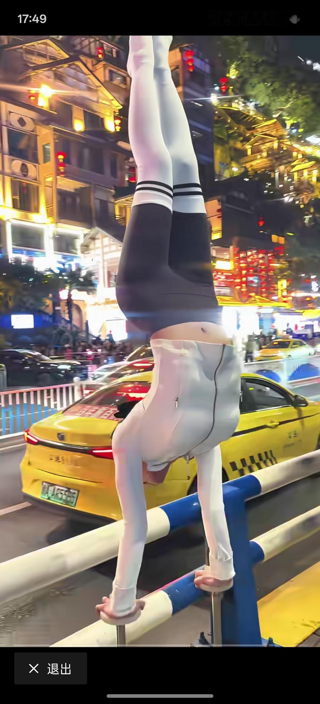 这个倒立动作真是太美了,拥有体操健将的身材,而且这种有非常好的平衡力度,这不是一般人能做得到的!而且这种非常有艺术感!感觉就像体操健将一样!路人都纷纷拍照,赞不绝口! 这种优雅很有艺术感的体操运动, 一般人练不出这样的动作!这样的动作非常的绝美!两只手撑的是单体支撑!要很强的平衡力才能做得到!