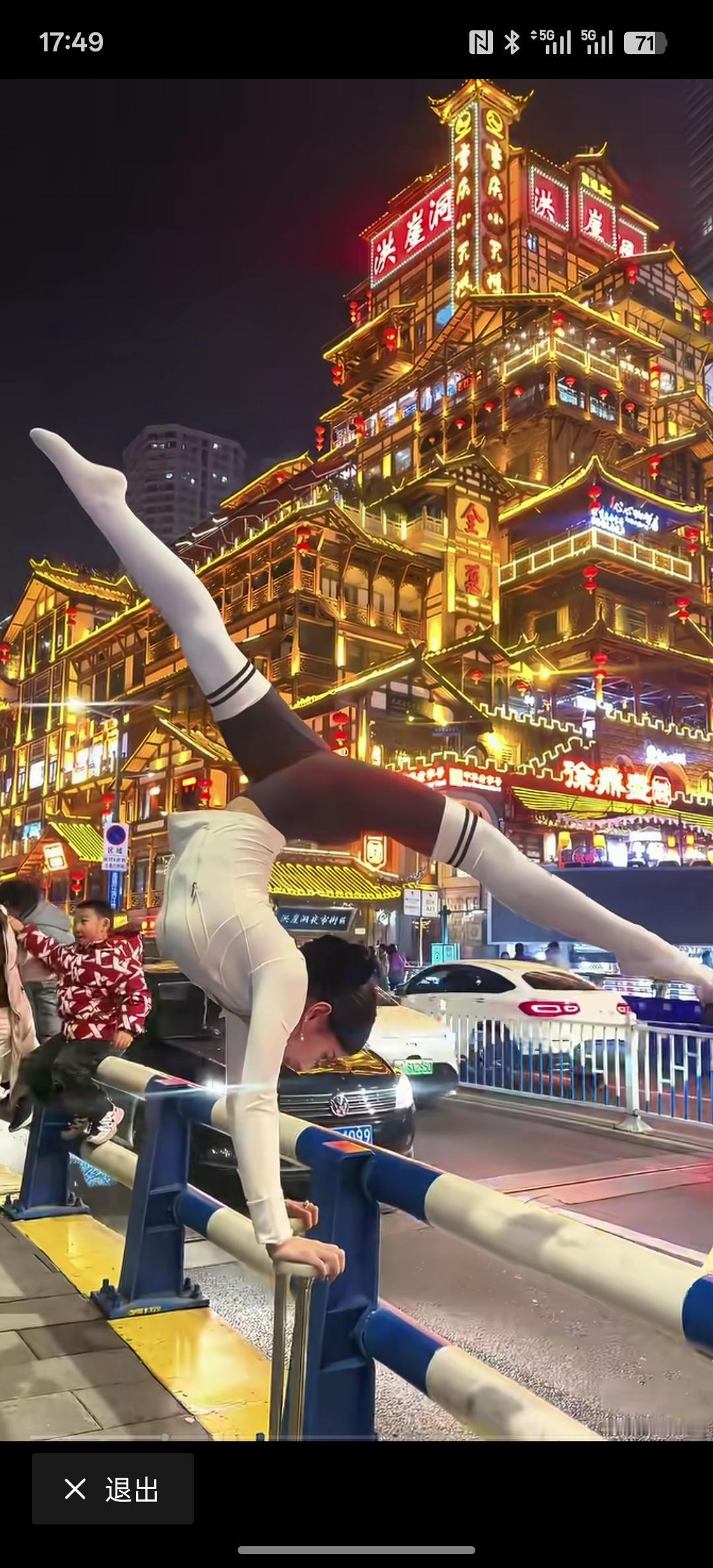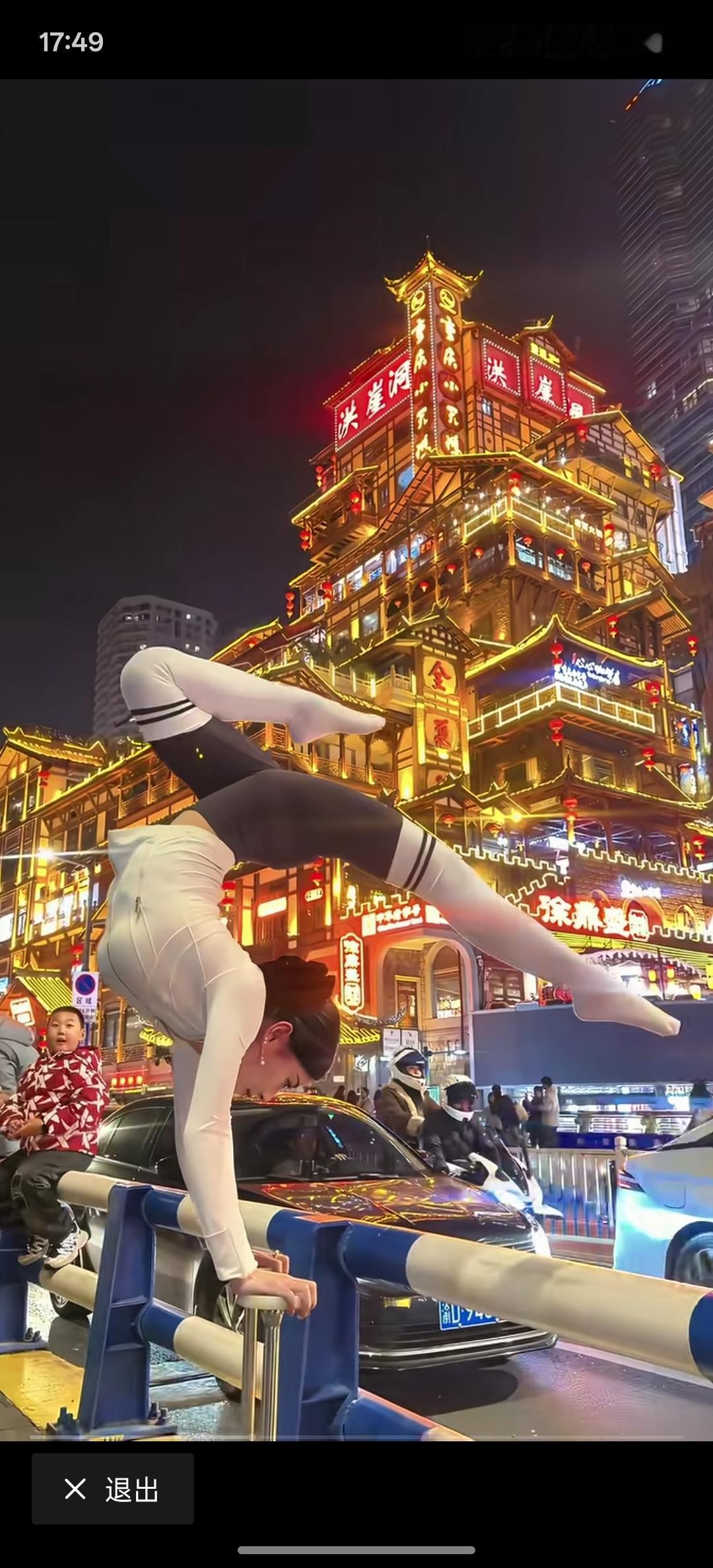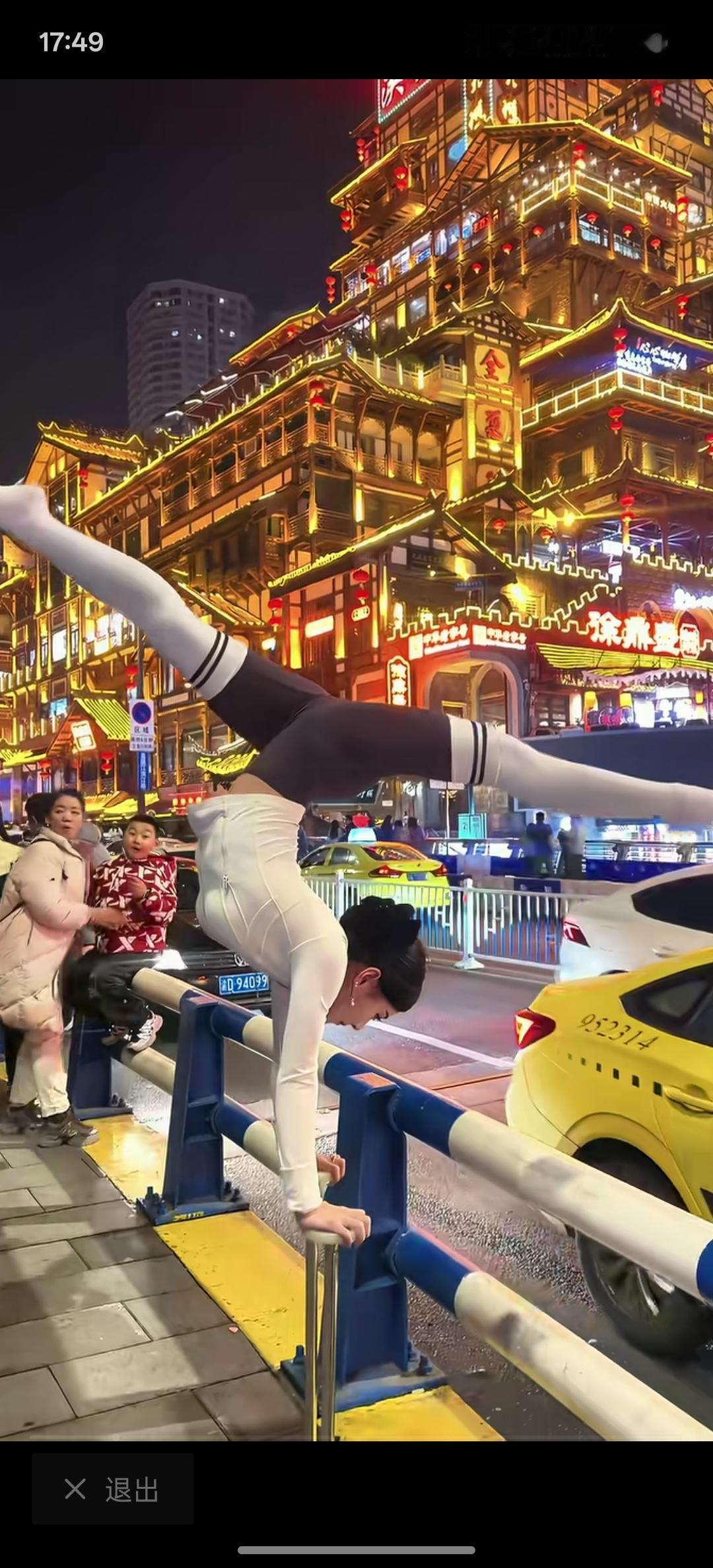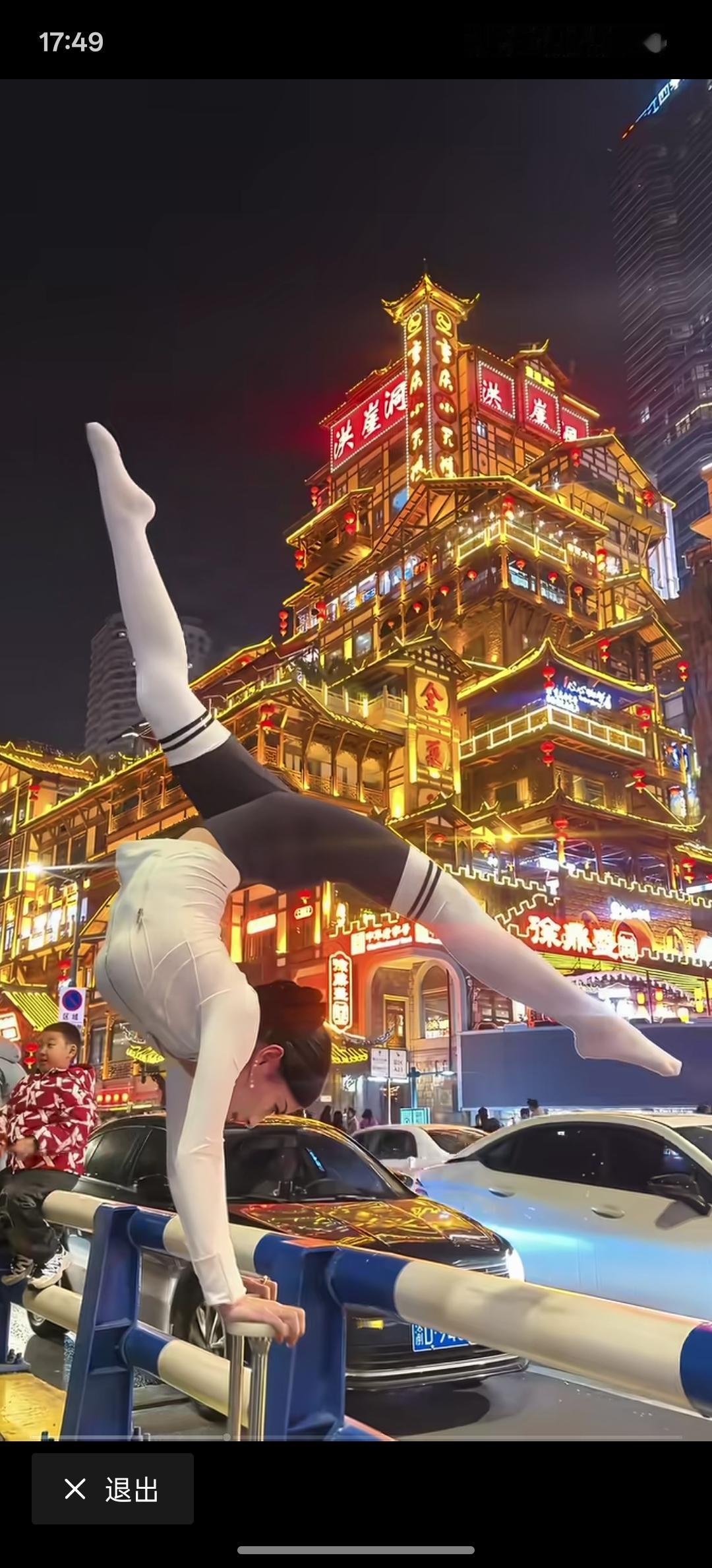 这个倒立动作真是太美了,拥有体操健将的身材,而且这种有非常好的平衡力度,这不是一般人能做得到的!而且这种非常有艺术感!感觉就像体操健将一样!路人都纷纷拍照,赞不绝口! 这种优雅很有艺术感的体操运动, 一般人练不出这样的动作!这样的动作非常的绝美!两只手撑的是单体支撑!要很强的平衡力才能做得到!