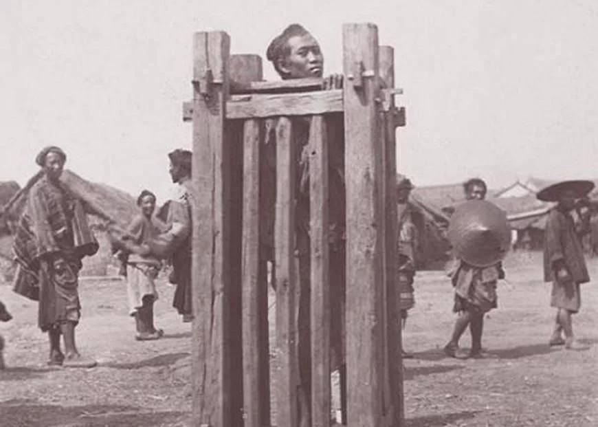 清朝时期,一个仆人因为犯了错,受到主人的惩罚。照片中这个男子坐在一架木梯子上面,他的手被绑了起来,头卡在凳子里面,他身后的院墙很豪华,应该是一个有钱人家。 清朝的压迫,较前朝更甚。满清入关,推行剃发令,“留发不留头”,以暴力手段驯服民心。扬州十日,八十万具尸体,堆叠出顺从的沉重代价。朝廷之上,大臣们自称“奴才”,跪拜如仪,雍正帝甚至认为,无缺点者不可用,唯有有软肋、有缺陷之人,才更易掌控。 这种扭曲的主仆关系,从宫廷蔓延至民间,成为社会的普遍现象。大户人家视仆如牲,责打囚禁,司空见惯。照片中的男子,或许只是因打碎了一只碗,或是迟开了一道门,便遭受如此羞辱,被示众于众目睽睽之下。他的头困于木凳,眼神空洞,这不仅是个人命运的写照,更是整个底层群体命运的缩影:不被当作人来看待,更不容有尊严地活着。 在这张照片背后,隐藏着无数个这样的故事,每一个都充满了血与泪。那些被奴役的人们,他们的声音被历史的长河淹没,他们的痛苦被岁月的尘埃掩盖。但他们的存在,他们的挣扎,却构成了那个时代最真实、最残酷的一面。 最终,他会被松绑,还是会死于羞愤?历史并未给出答案。但可以肯定的是,这样的惩罚,在那个时代,并未引起一丝波澜。因为,在那个时代,这样的场景太过常见,这样的命运太过普遍,以至于人们已经麻木,已经习惯。然而,这并不意味着我们可以忘记,可以忽视。因为,每一个被奴役的灵魂,都值得被铭记,每一份被践踏的尊严,都值得被尊重。