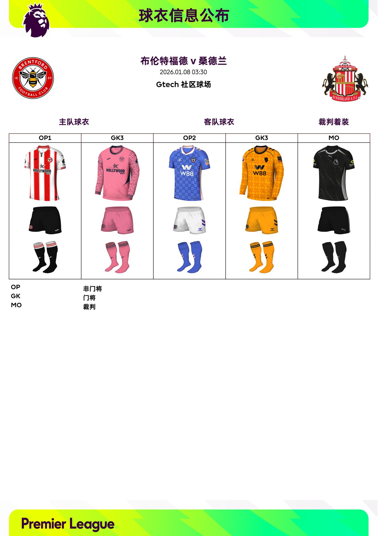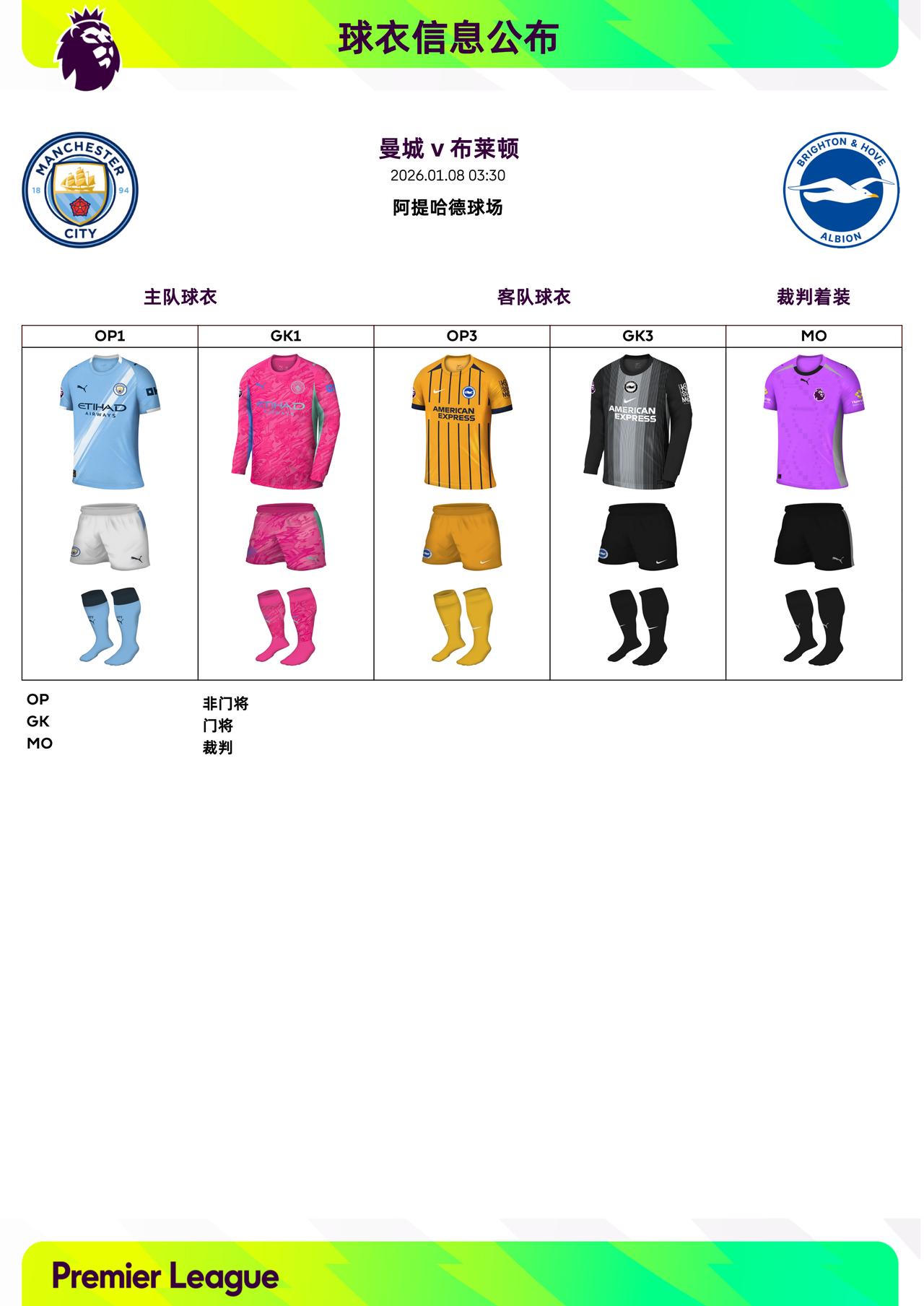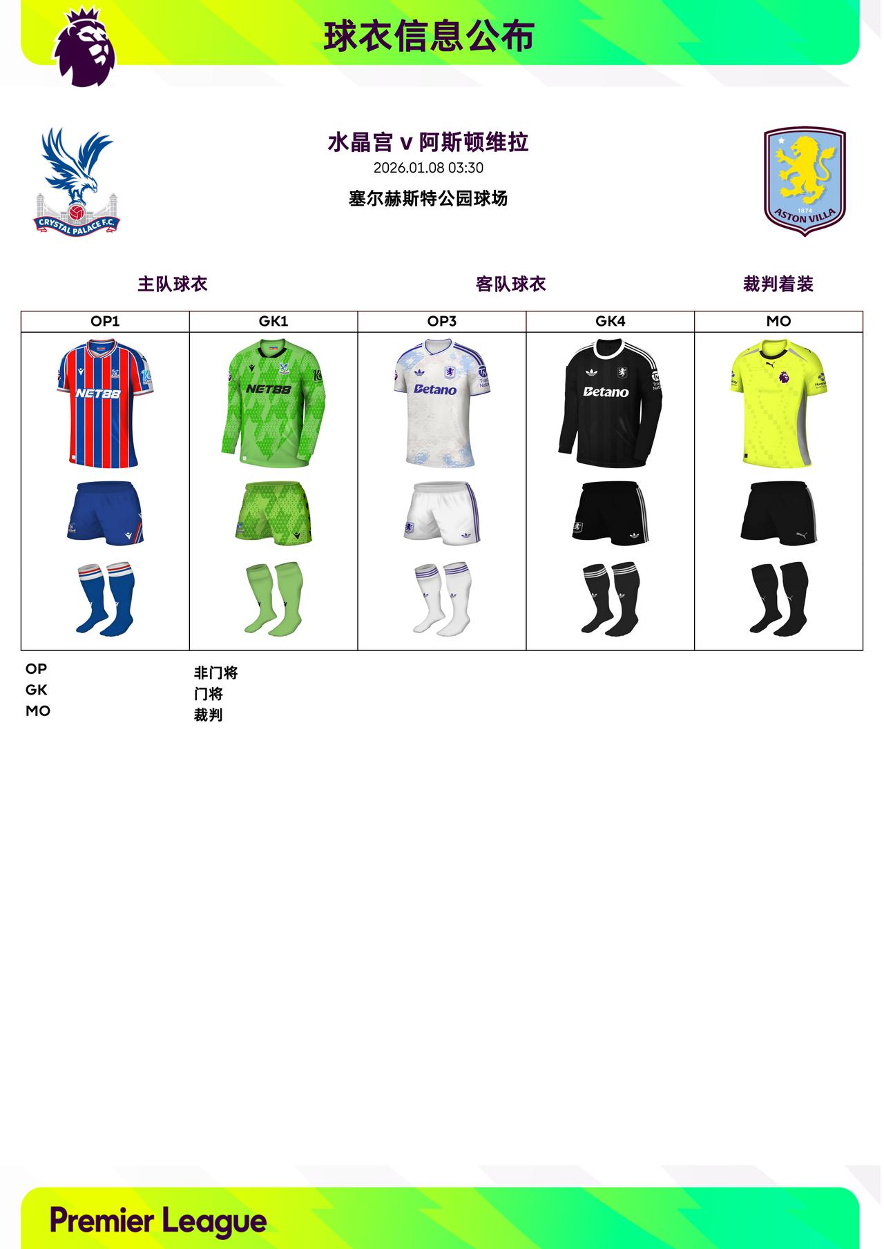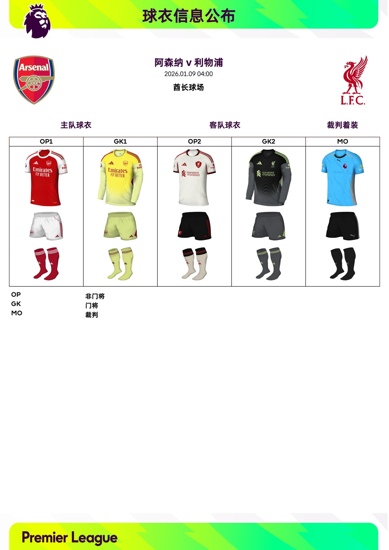 2025/26赛季英超联赛第21轮球衣信息: ◉ 焦点战——阿森纳 v 利物浦