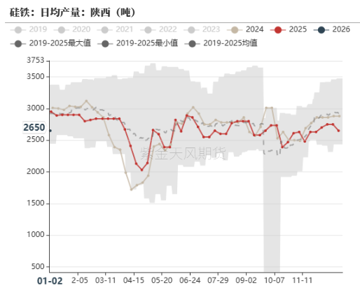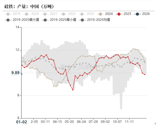 当前硅铁全国产量和陕西产量均处于历史同期低位水平,需求端钢厂铁水恢复中,金属镁产量高位,整体供需处于紧平衡状态。