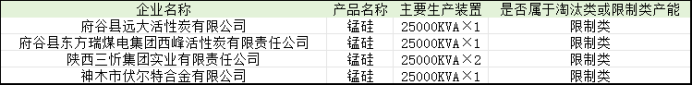 《陕西省发展和改革委员会陕西省工业和信息化厅关于执行差别电价有关事项的通知》意见的函中部分限制类工厂产能未满足总容量50000kva标准,部分为单一炉型产能较低。