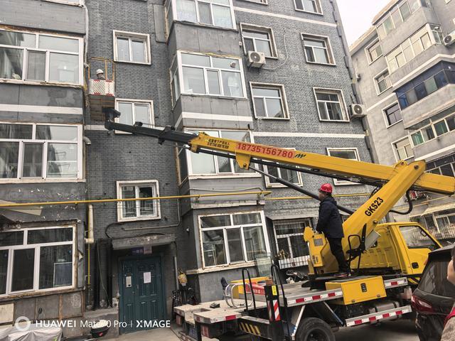 社区负责人迅速响应,联合小区物业协商处置方案。因冰柱位置高、人工清除风险大,双方决定调用高空作业工程车专业处置。不多时,作业人员登上高空工程车升至冰柱旁,小心敲碎清理,郭莉则在地面维护秩序,提醒居民远离作业区。约一小时后,外立面冰柱被彻底清除。