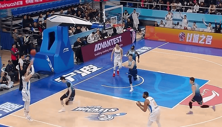 曾凡博底角接球雷蒙分球,三分出手稳稳命中