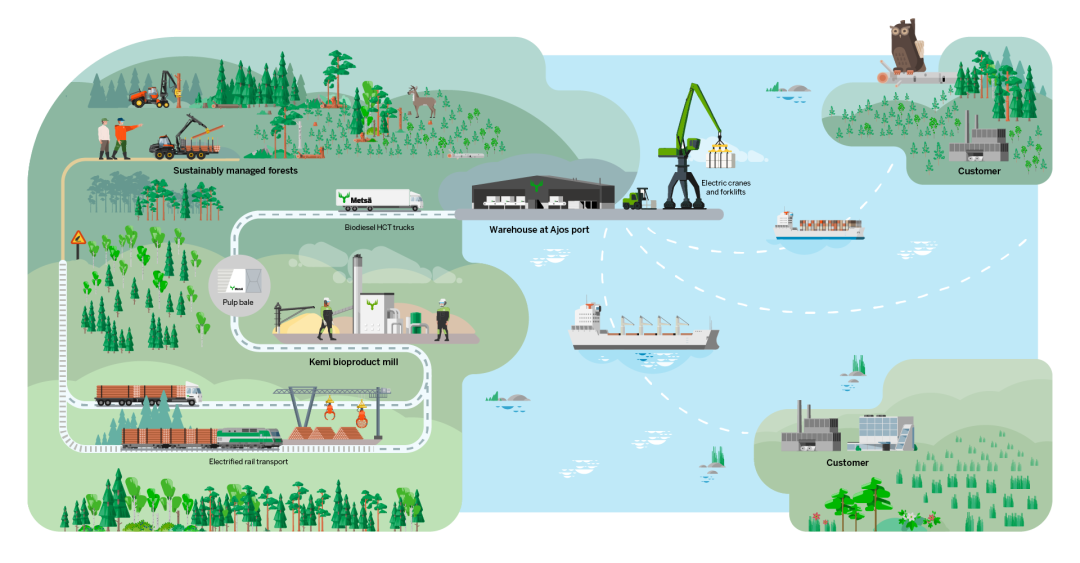 从凯米到世界各地,芬林的木浆依托的是高效、可靠的物流链。每一批货物的目标只有一个:准时到达,保障客户生产不中断。