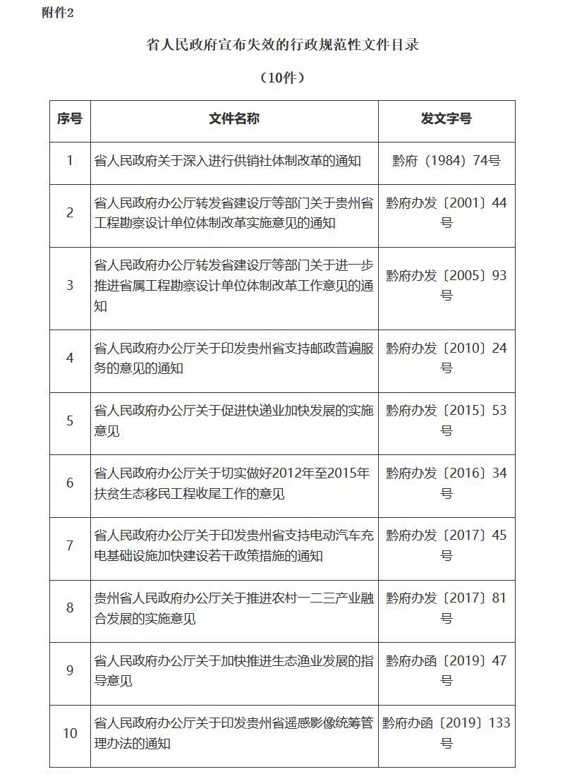 1月6日,贵州省人民政府网发布《关于废止、宣布失效、修改部分行政规范性文件的决定》。