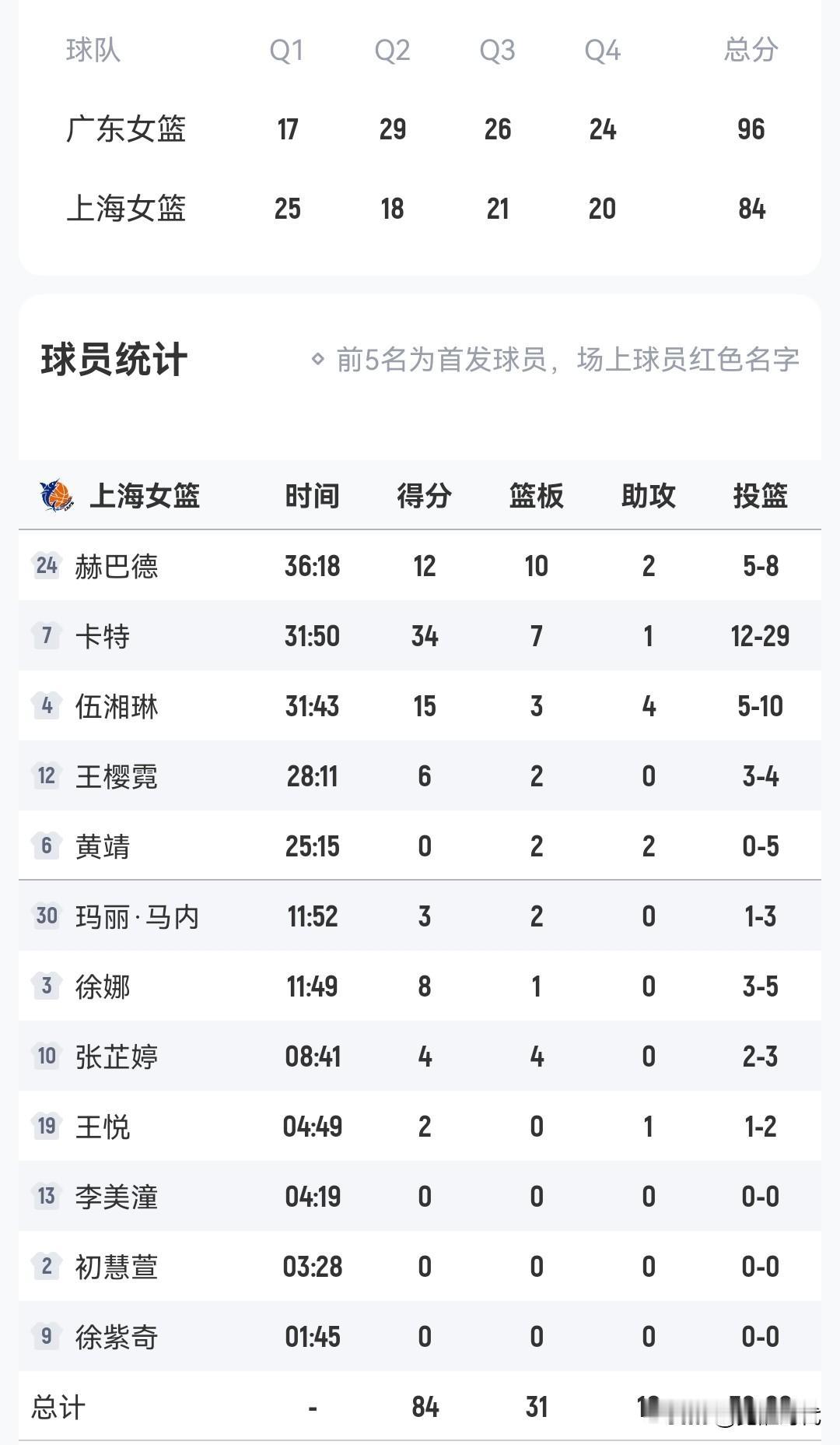 广东女篮胜上海女篮 继续不败战绩