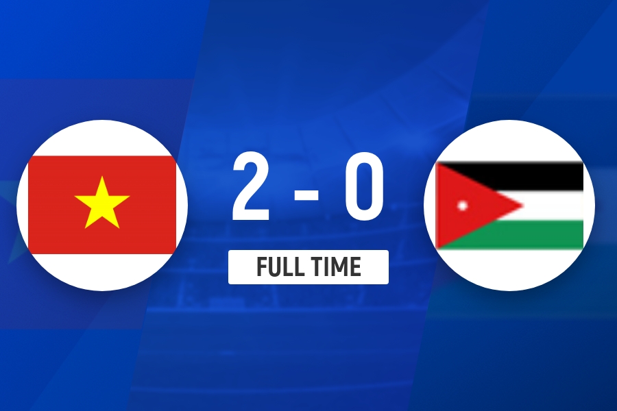 全场比赛结束,越南U23队2-0战胜约旦U23队。