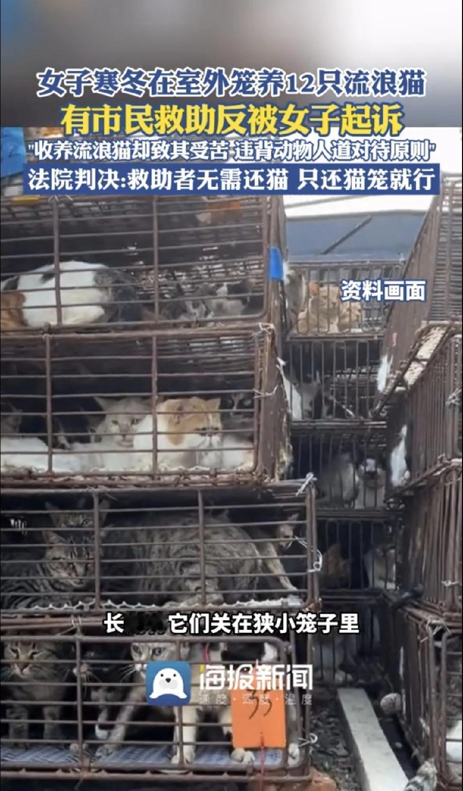 北京,一女子收养了12只流浪猫,这本该是一件积德行善的好事,可谁知,女子将猫收养后并没有好好对待,而是长期将它们关在狭小的笼子里,并且大冷天直接放在室外的人行道旁,导致猫咪生病,每天发出凄厉的惨叫声,一名好心市民实在不忍心,将猫咪带走救助,可没想到却被女子起诉,要求返还猫咪和猫笼,并赔偿她的损失。 北京的冬天十分寒冷,正常人在室外多待一会儿都会冻得受不了,可是柴女士收养了流浪猫后,却没有给猫咪一个温暖的家。 她不仅将12只流浪猫关在狭小的笼子里,而且还直接搁在人行道旁,任由猫咪在寒风中被冻得瑟瑟发抖。 柴女士这种“收养”的行为,简直让人匪夷所思。她口口声声说,自己是好心收养这些流浪猫,可她的所作所为和虐待又有什么区别。 市民罗女士好几次路过,都会听到笼子里的猫咪发出惨叫声。凑近一看更是让人十分不忍,只见笼子里,好几只猫都蜷缩着身子发抖,还有一些则是眼睛发炎,身上满是脏污,看起来都是一副病恹恹的模样,一看就是没有被好好对待。 罗女士实在是看不下去了,猫咪们的惨状让她无法袖手旁观,而且再这样下去,这些猫咪迟早会被冻死,于是,她想也没想就将这些遭罪的猫咪给救助走了。 罗女士不仅把猫咪安置在暖和的地方,还带那些生病的猫咪去看医生。可没想到,柴女士发现猫咪被带走后,非但没有反思自己的行为,反而还将罗女士告上了法庭,要求罗女士返还12只猫咪和猫笼,并且还要赔偿她的经济损失。 柴女士这波操作真的是让人刷新三观,这种倒打一耙的行为一般很少有人能做出来。不知道柴女士是怎么有底气理直气壮的起诉的。 法院开庭审理时,法官明确指出,柴女士虽然收养了猫咪,却违背了动物人道对待原则,客观上已经威胁到了猫咪的生命健康,而且她所谓的收养,并没有走合法程序。 而罗女士的救助行为,既保护了弱小生命,也维护了公共利益,最终,一审、二审都给出了公正的判决:罗女士只需归还猫笼,柴女士的其他诉求全部被驳回。 对于这个结果,真的是大快人心。要知道,收养流浪动物是好事,但前提是要发自内心的喜爱动物,用心去照料它们,给它们舒适的环境,而不是随意关在笼子里,给口吃的就行了。 对于此事,你怎么看呢?