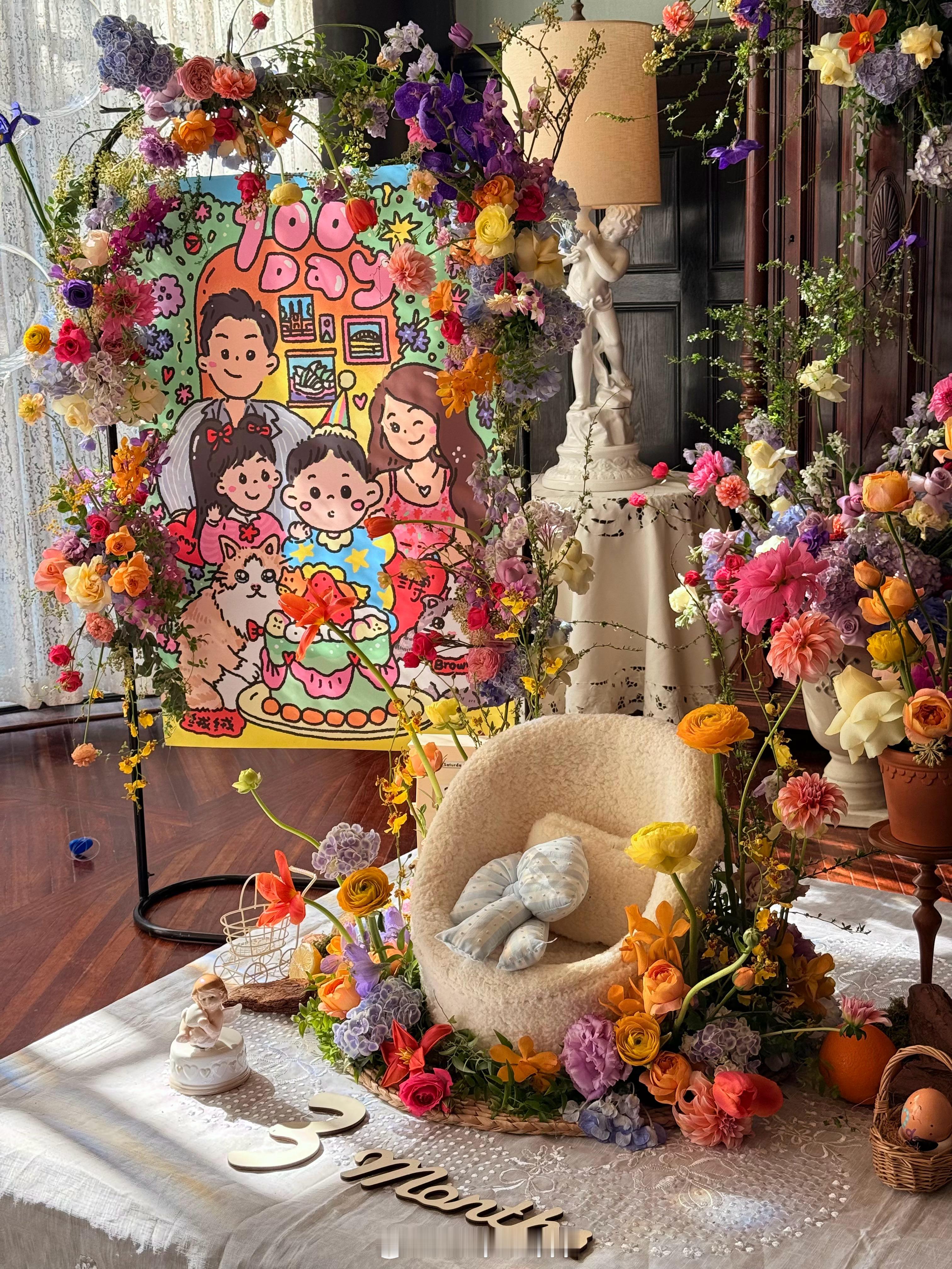 筹备很久的百日宴💐从花艺 到插画 到蛋糕 到背景布 到座位卡所有的一切全是我的