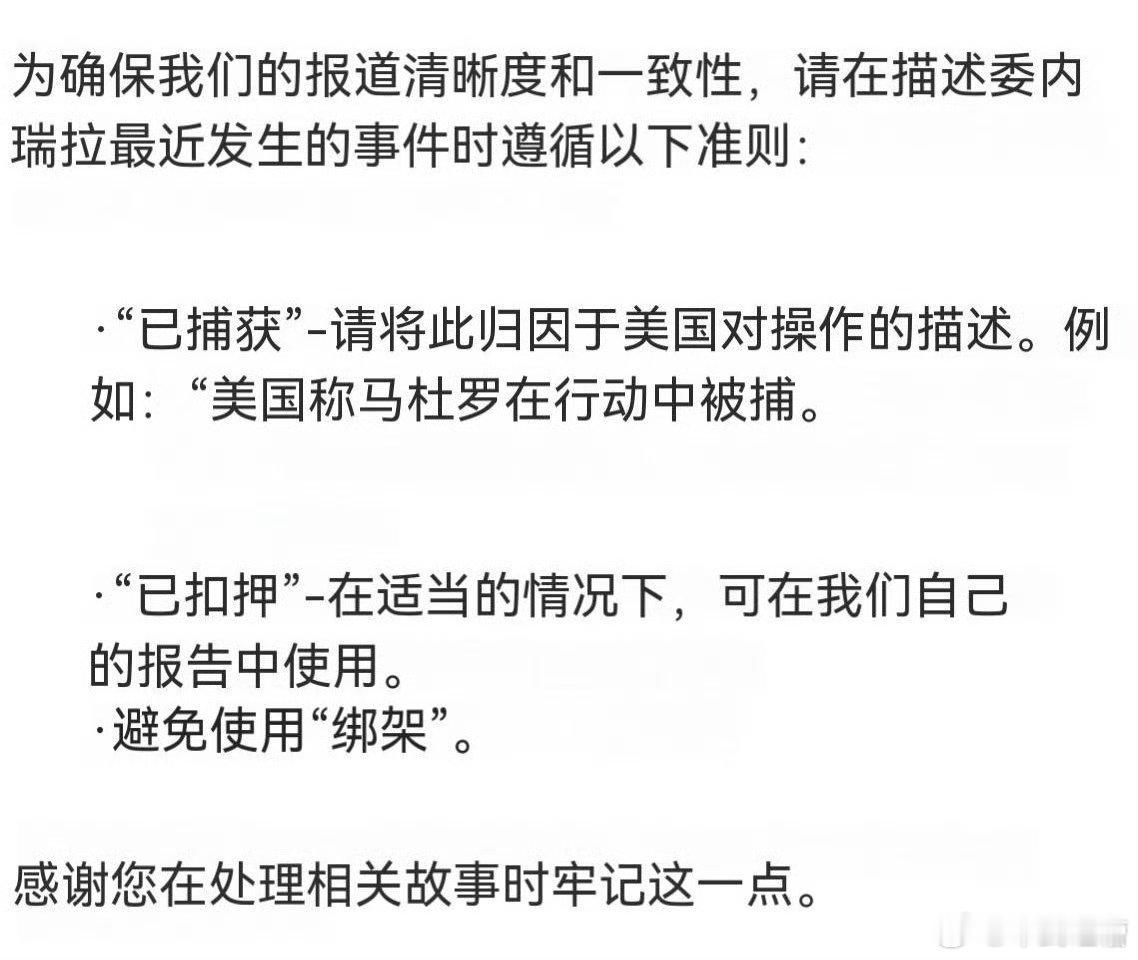美国人当了婊子,又想立牌坊绑架了马杜罗后BBC发了个通知要求媒体在报道时禁用绑架一词如果不用绑架,我个人建议使用邀请美国派特种部队进入委内瑞拉邀请马杜罗来到纽约接受审判你看,这不就优雅了吗?委内瑞拉爆发大规模抗议活动中方就马杜罗称无罪表态