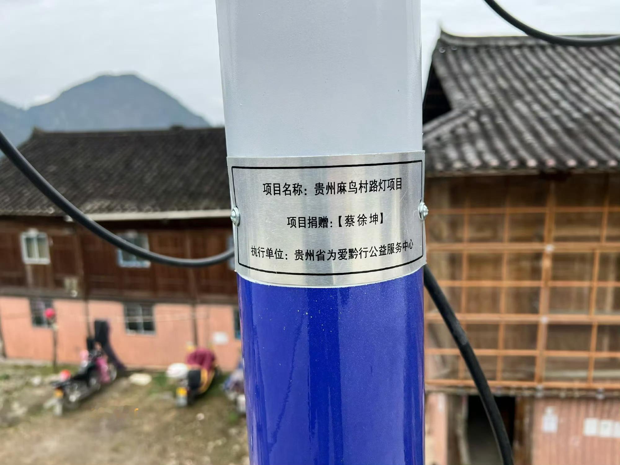 蔡徐坤为贵州麻鸟村捐赠的100盏路灯已安装上了。在微光中,我看到了多重价值,此善举不仅延续了"照亮他人"的精神传统,还照亮了山村的夜晚,更照亮了孩子们的心,激励着年轻一代能勇敢的去追求自己的梦想。让我们同蔡徐坤一起,共同守护这份光明传承,让善意如灯,长明不熄。蔡徐坤