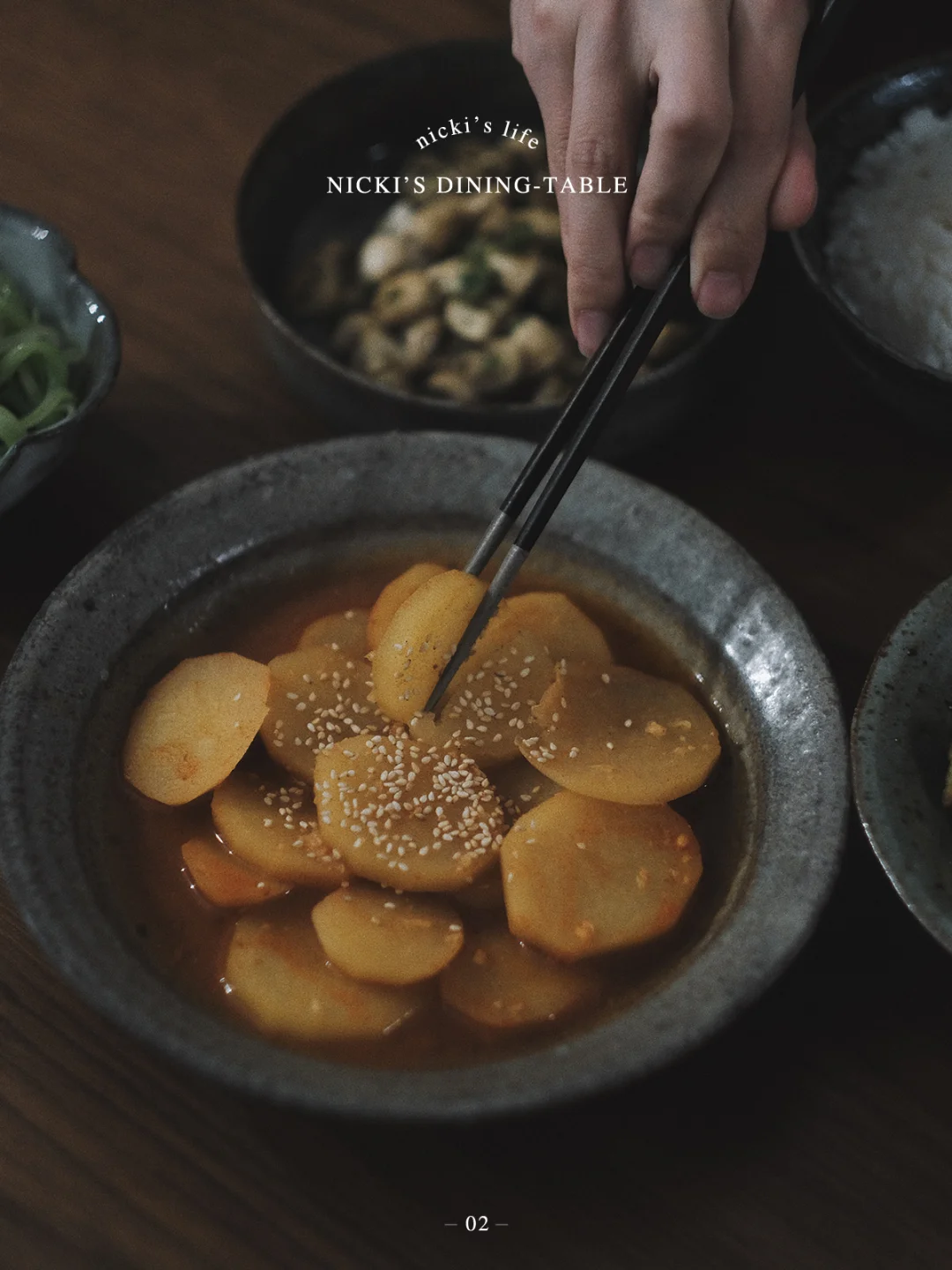 •用筷子搓一下土豆,酥了就转大火,稍微收干一些汤汁,关火,撒上大葱,淋上麻油,芝麻即可。