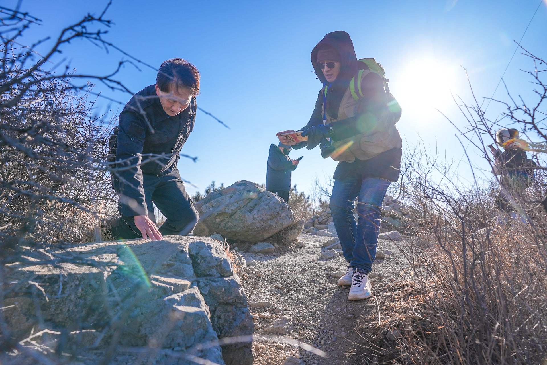 顶着大风爬过一段陡峭的山坡,马垒和队员扒开枯枝,一遍遍弯腰下蹲,检查山石,对比手机里的照片。