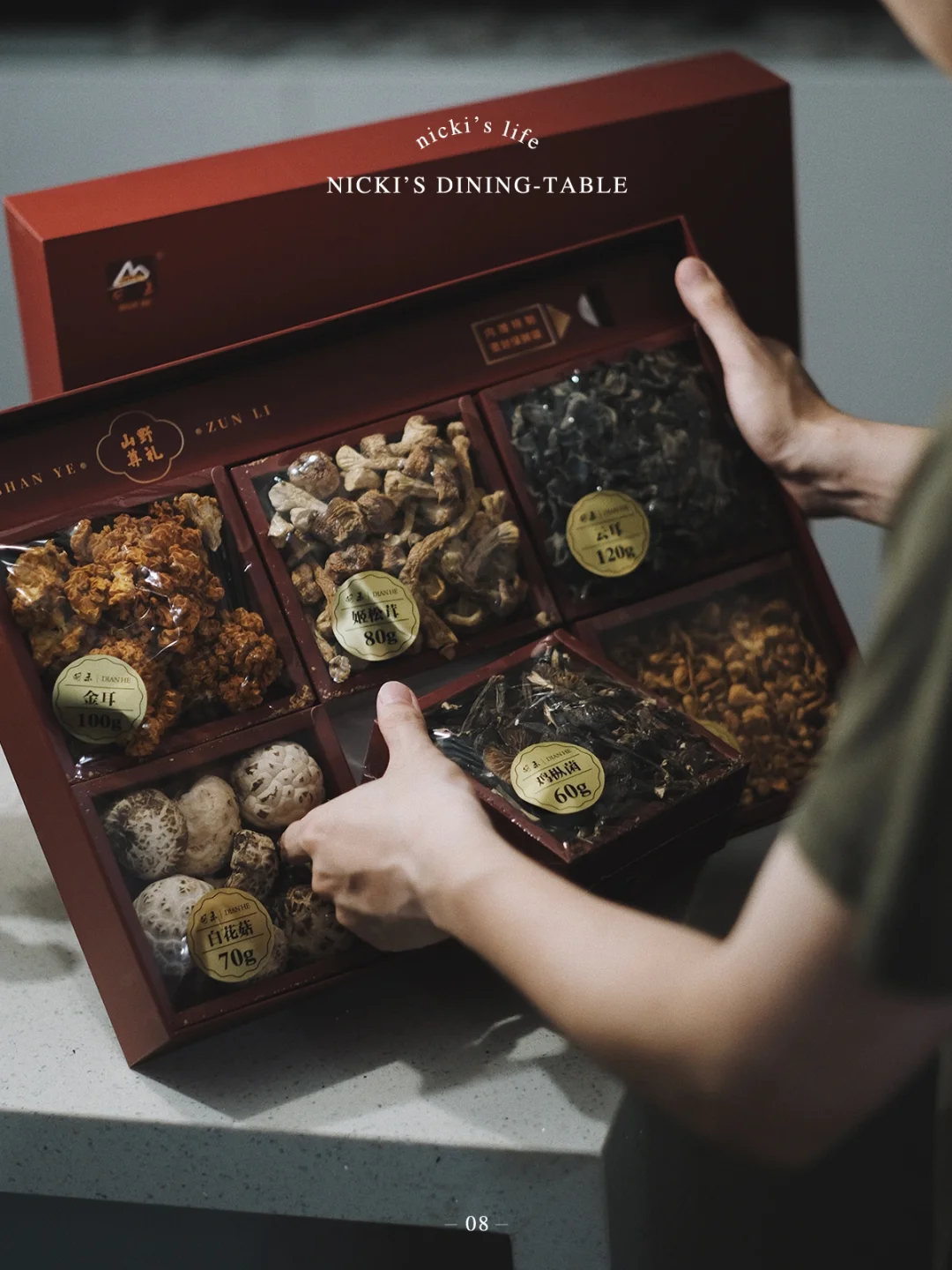 相比新鲜菌菇,我个人觉得泡发类的菌菇熬汤、焖炖更鲜甜,其次不论是营养价值上来说,还是从储存角度,干的菌菇都更胜一筹。果断决定买一盒回家熬个素高汤试试。比起过年过节送鲜花、水果,我觉得送这些高端食材更体面、实在,包装也精美上档次。